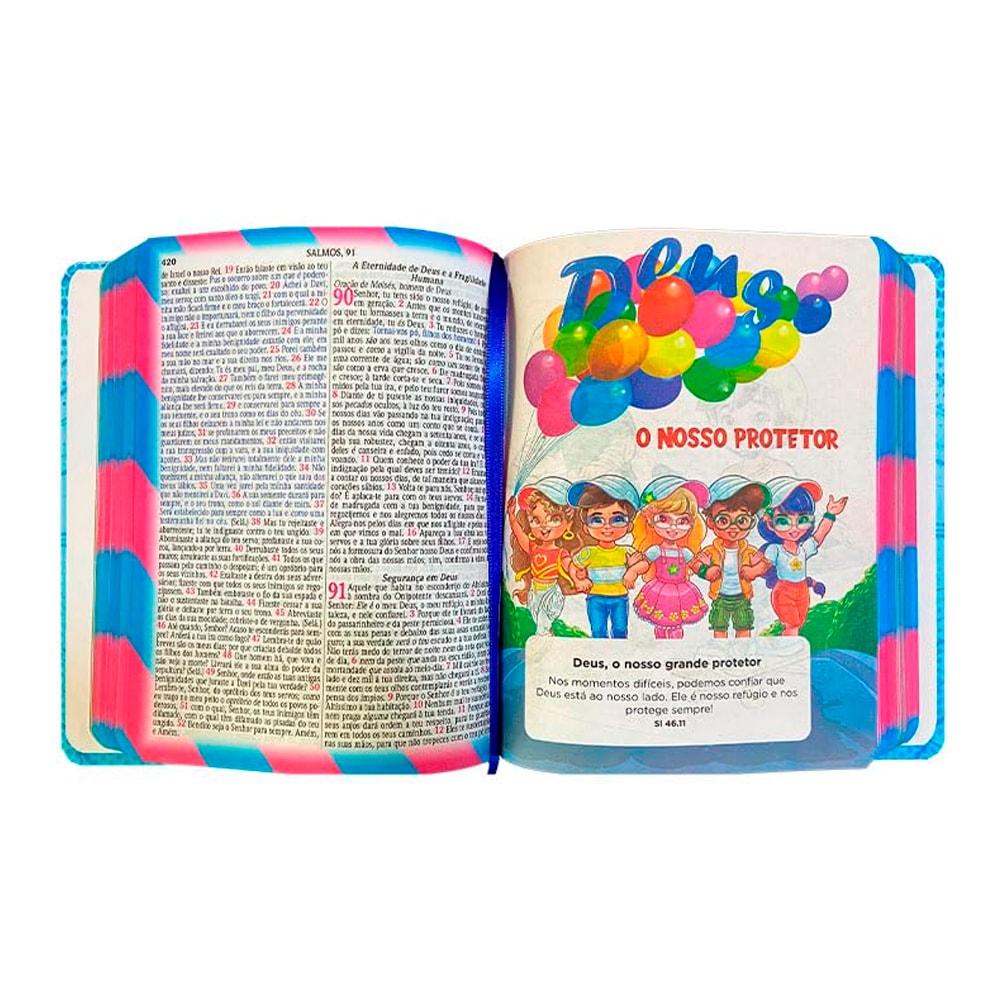Presenteie com propósito! Esta Bíblia é o recurso ideal para momentos em família, escola dominical e culto infantil. É mais que um livro; é um tesouro que ajuda a construir uma base sólida de fé, carinho e confiança em Deus desde a infância.