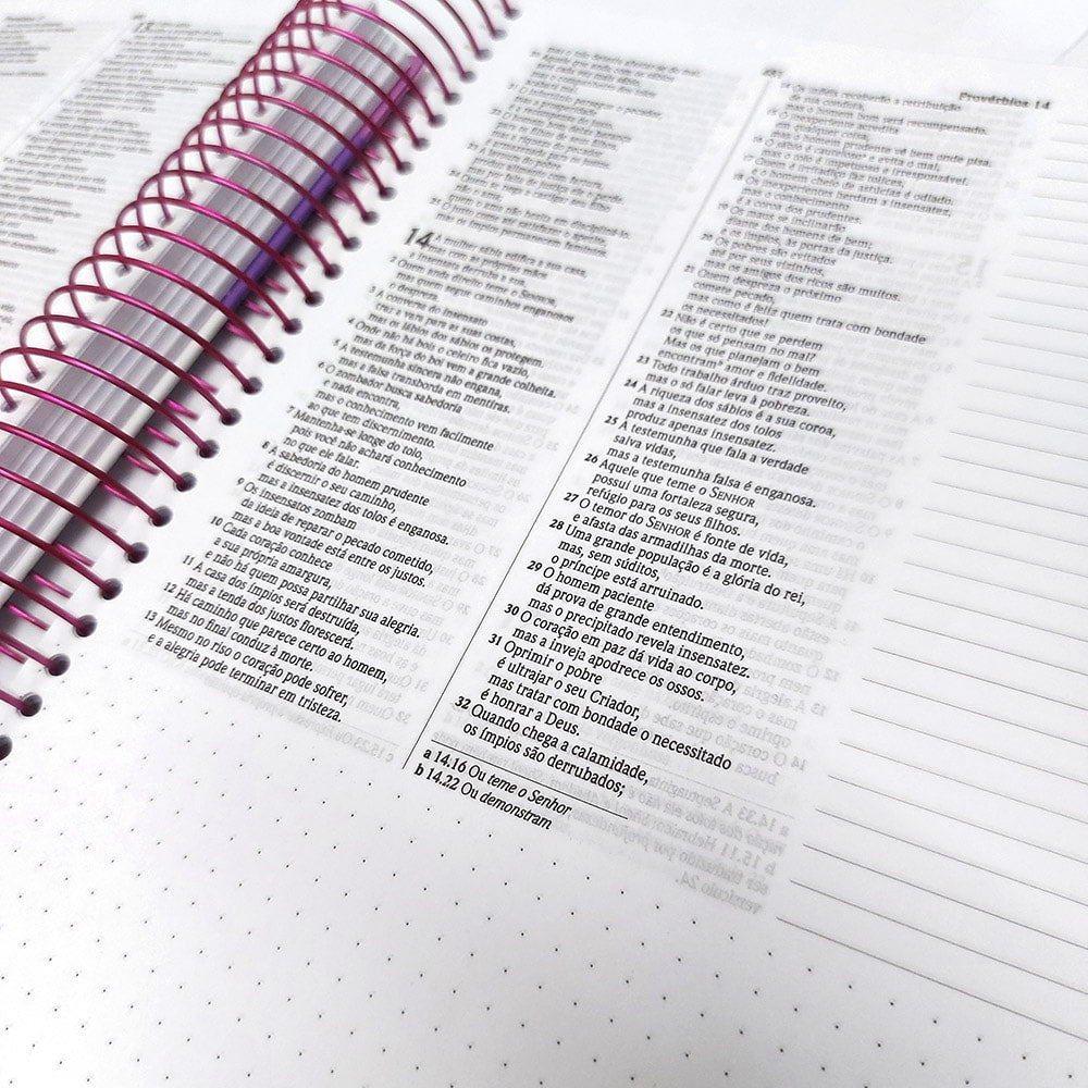 A bíblia anote com espaço para anotações, é desenvolvido seguindo o gosto de pessoas que tem um hábito e amam desenhar, escrever tudo que o que Deus tem falado com você, popularmente procurada como "journaling".