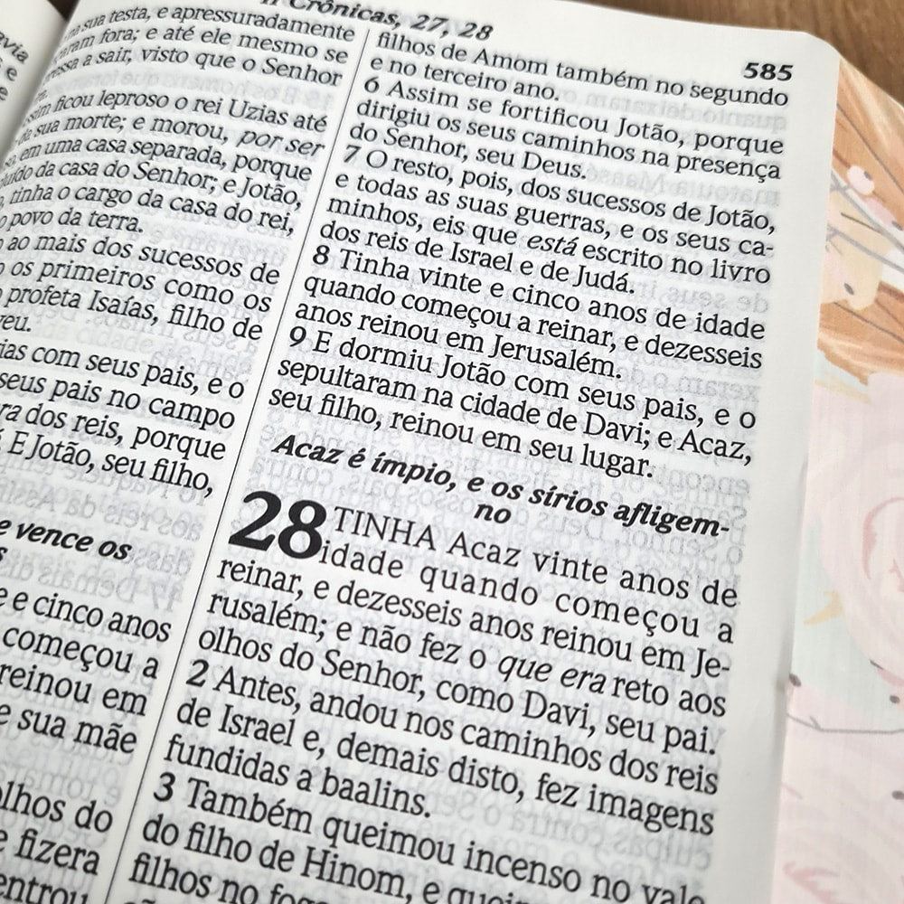 Uma das mais tradicionais versões das Sagradas Escrituras, a edição Revista e Corrigida é a preferida de milhões de cristãos brasileiros por seu estilo sóbrio, que preserva o rigor de uma obra milenar e o zelo pela fidelidade aos originais. Revisada em 1997, sua linguagem ganhou maior fluidez e contemporaneidade, tornando ainda mais fácil a plena compreensão de seu conteúdo até mesmo por leitores pouco acostumados ao texto bíblico. Essa tem um tamanho maior de letra, traz mais conforto na leitura.