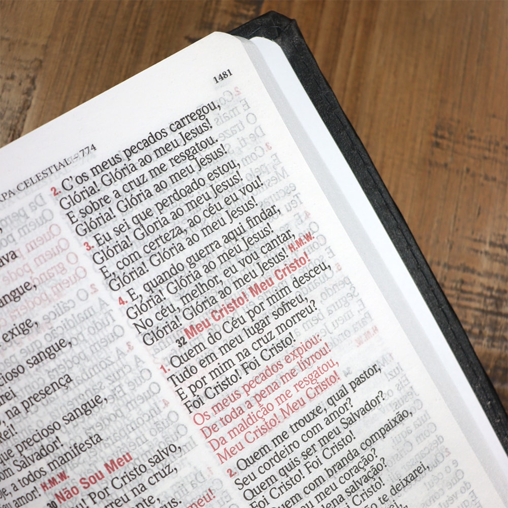 Além disso, selecionamos cuidadosamente cânticos especiais, marcados em vermelho, para inspirar e edificar sua devoção. Cada verso é uma promessa, cada estrofe uma oração, guiando-o em sua busca pela verdade e pela presença de Deus.