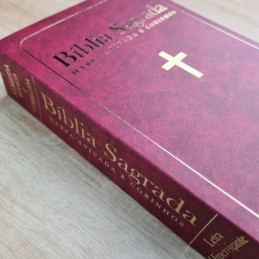 Bíblia Sagrada, com a linguagem na versão ARC (Revista Corrigida) de João Ferreira de Almeida. Sendo a versão mais utilizada pelos evangélicos do Brasil. Com sua fidelidade traduzida dos textos originais pelo missionário português João Ferreira de Almeida, esta obra tem como destaque sua linguagem elegante e culta. A bíblia também possui harpa avivada e corinhos.