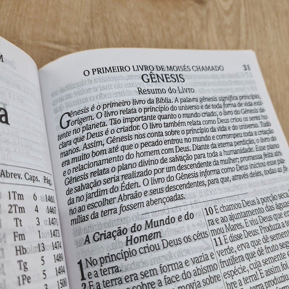 Bíblia Sagrada, com a linguagem na versão ARC (Revista Corrigida) de João Ferreira de Almeida. Sendo a versão mais utilizada pelos evangélicos do Brasil. Com sua fidelidade traduzida dos textos originais pelo missionário português João Ferreira de Almeida, esta obra tem como destaque sua linguagem elegante e culta. A bíblia também possui harpa avivada e corinhos.