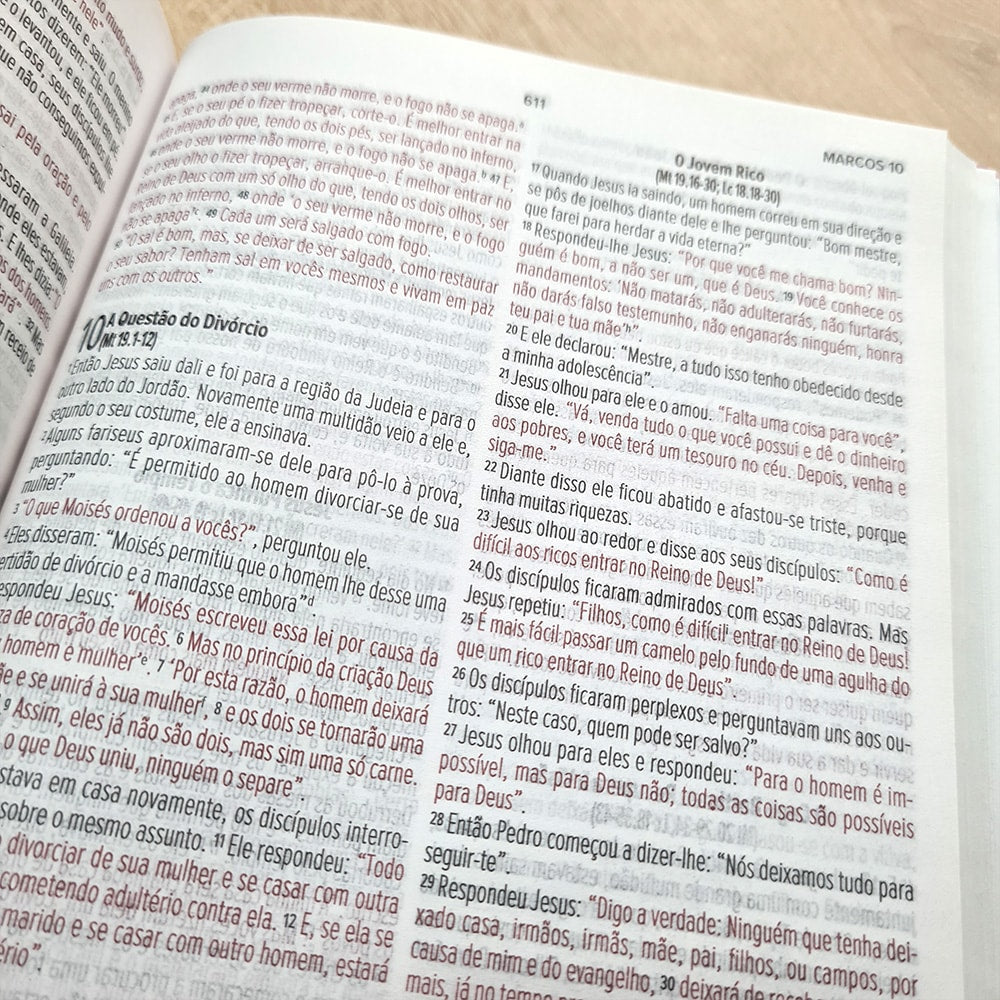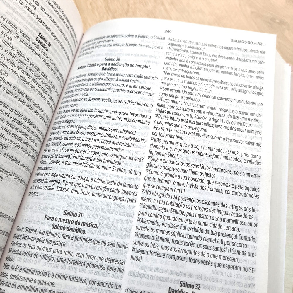 Bíblia Sagrada, com a linguagem na versão NVI (Nova Versão Internacional). Dentre as versões da bíblia, ela se torna uma das mais modernas e preservando a clareza do texto, permanecendo fiel aos Escritos originais.