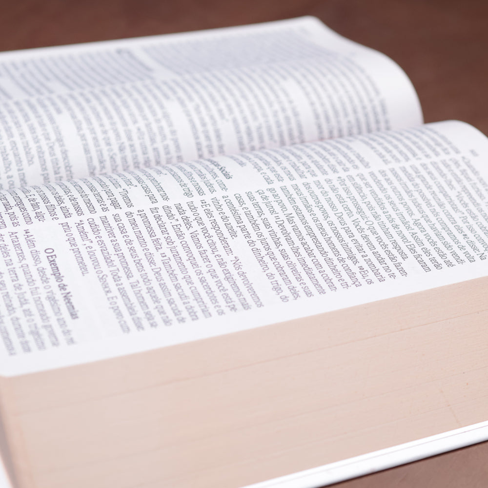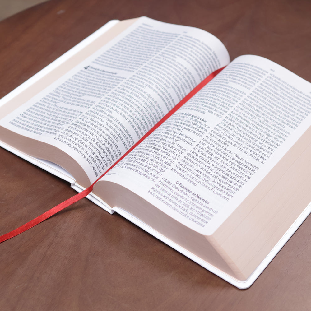Com design moderno e elegante, esta Bíblia oferece uma experiência de leitura confortável e profunda, ideal para estudos devocionais, meditação ou compartilhamento da mensagem divina.