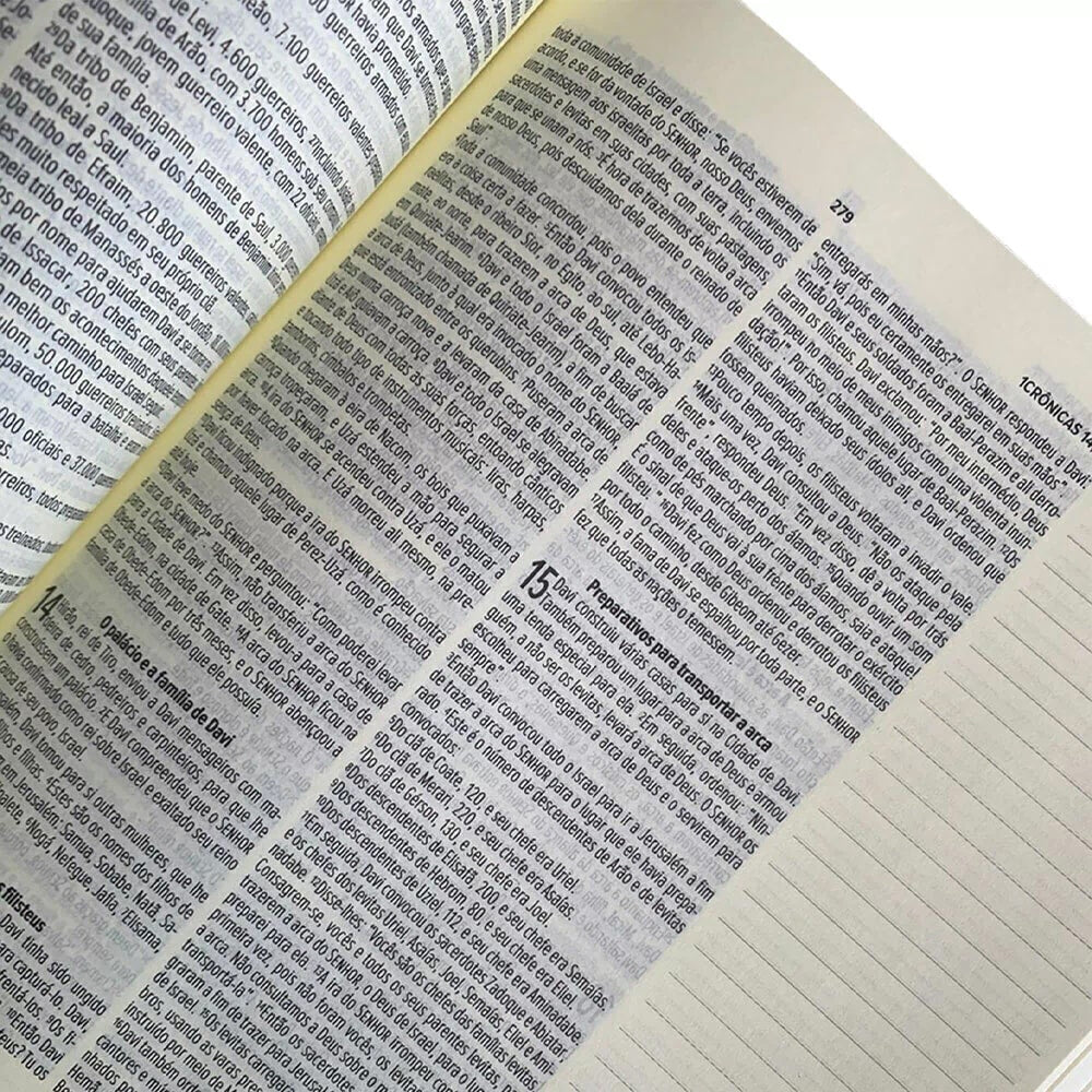 A Bíblia Leia e Anote "Fonte de Vida" (NVT) é uma edição especial para quem ama anotações e Bible Journaling. Com margens largas, papel polén encorpado, capa dura, fitilho duplo e elásticos, ela é leve, compacta e ideal para levar em qualquer lugar. Traz a tradução moderna e fiel da Nova Versão Transformadora, perfeita para aprofundar-se na Palavra e aplicar seus ensinamentos no dia a dia. Inspirada em Isaías 44:3, é a escolha certa para transformar seu tempo devocional em um momento criativo e marcante.