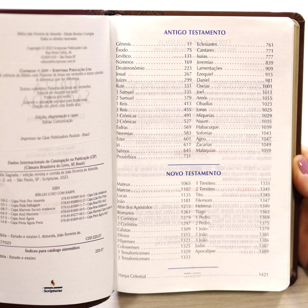 E para elevar sua adoração, esta edição inclui a Harpa Cristã com 774 hinos e cânticos. Cada melodia convida você a se conectar com o Céu, enchendo sua vida de louvor e comunhão. Hinos especiais destacados em vermelho marcam momentos de inspiração e devoção.