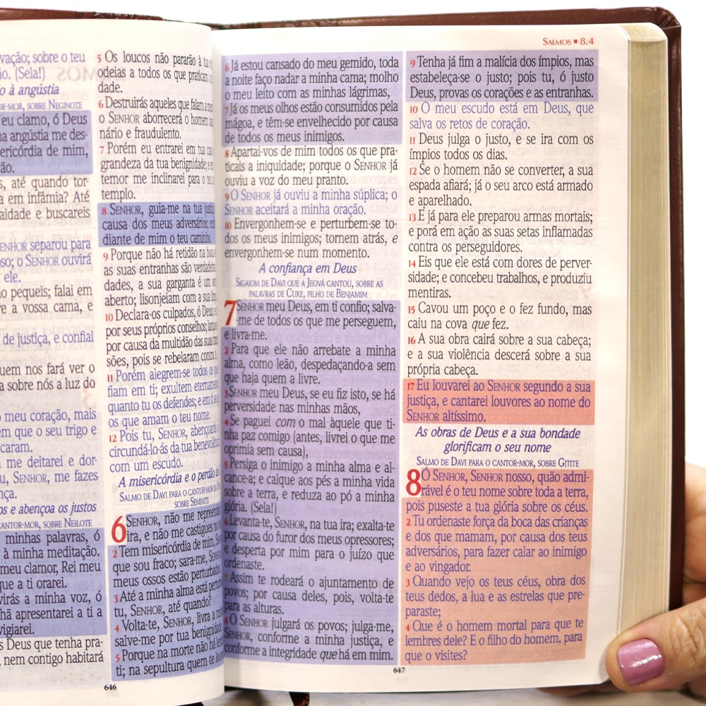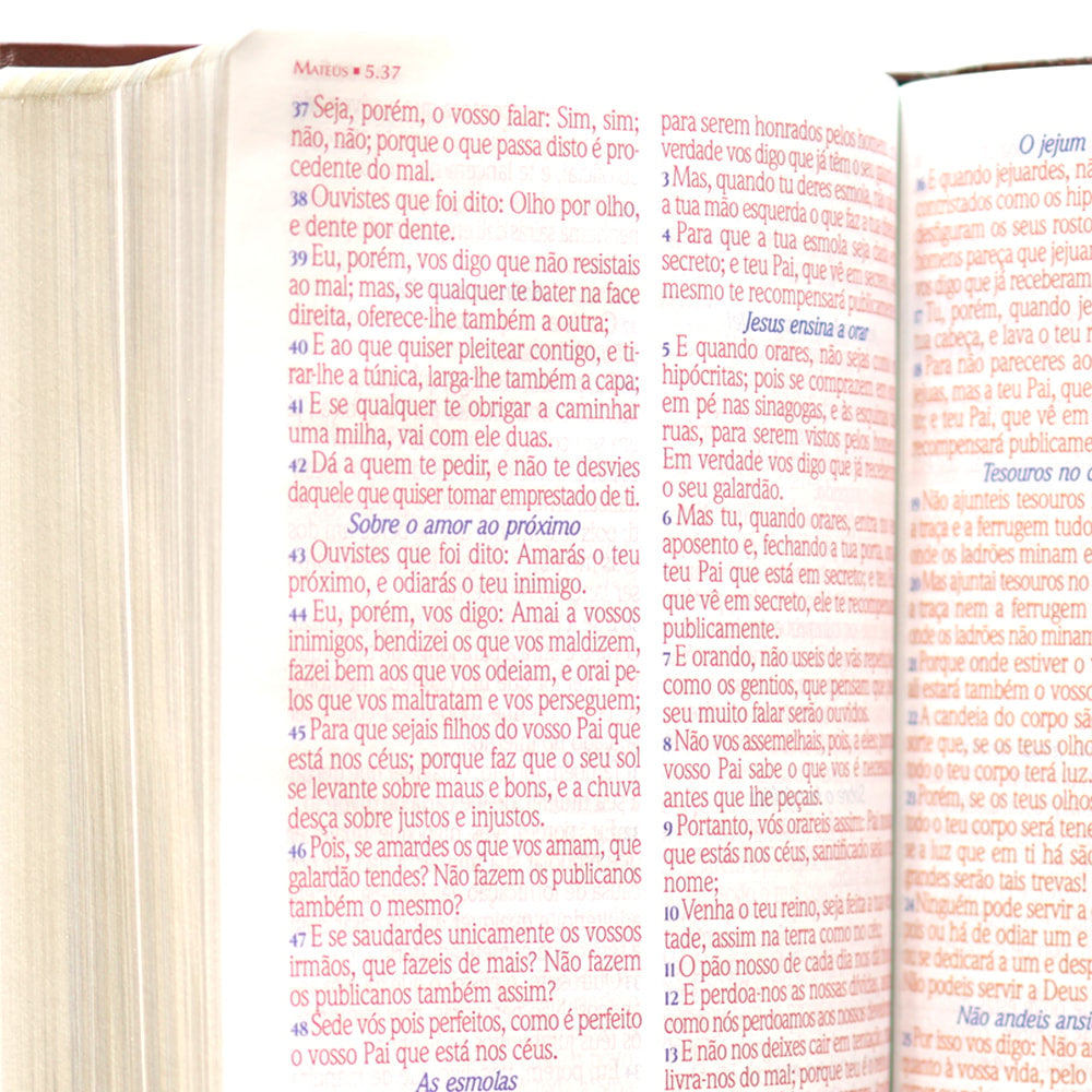 Com letra hipergigante, cada versículo ganha uma nitidez incomparável, transformando a leitura em um momento prazeroso e acessível, mesmo para aqueles com dificuldade de visão. As palavras parecem saltar das páginas, facilitando a compreensão e aprofundando sua conexão com o divino.
