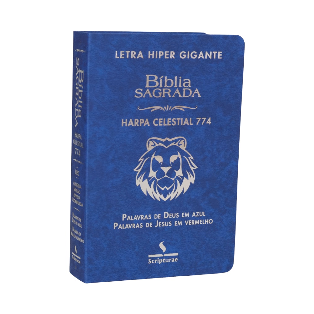 Bíblia Sagrada Harpa Celestial 774 | ERC | Letra Hipergigante | Capa Luxo Leão Azul