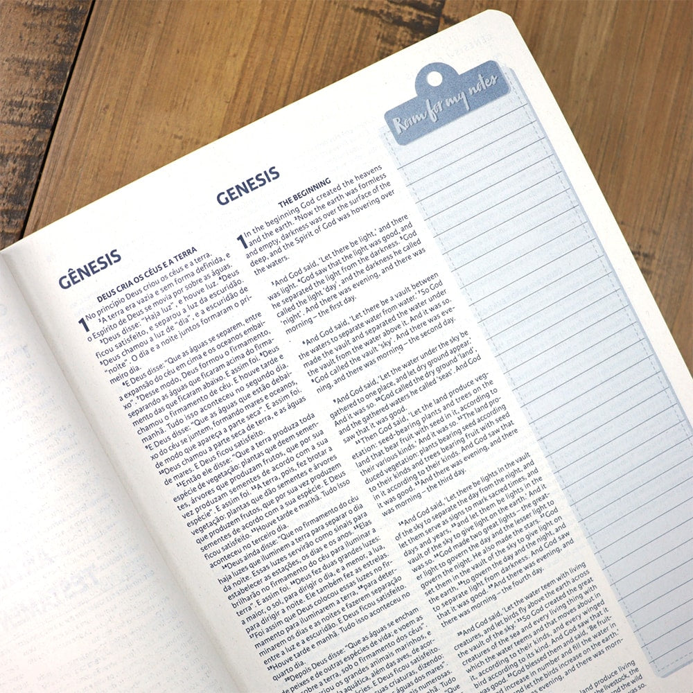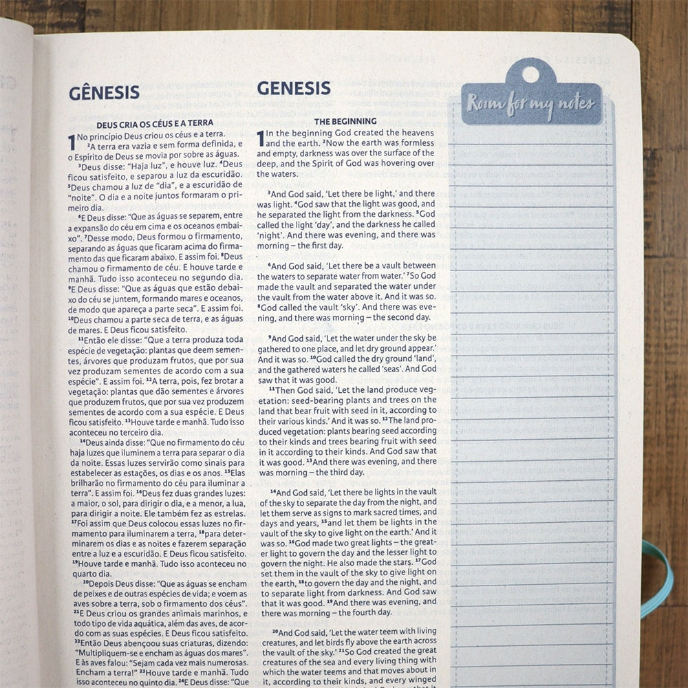 Seja para anotar passagens inspiradoras, esclarecer dúvidas de inglês durante o estudo bíblico ou registrar reflexões pessoais, este espaço para personalização torna a Bíblia Bilíngue NBV-NIV uma companheira indispensável para qualquer estudante da Palavra de Deus. Permita-se mergulhar mais fundo na Palavra, conectando-se não apenas com o texto sagrado, mas também com suas próprias reflexões e aprendizados pessoais.