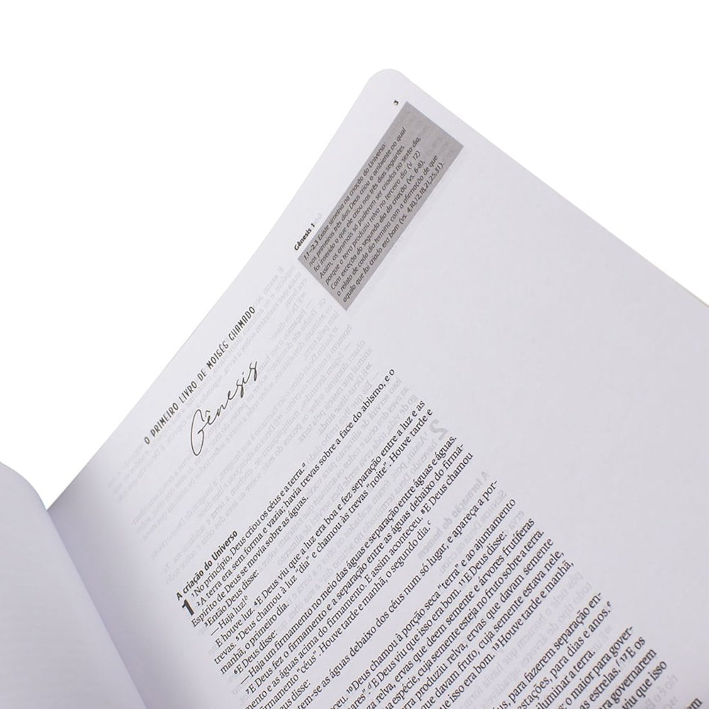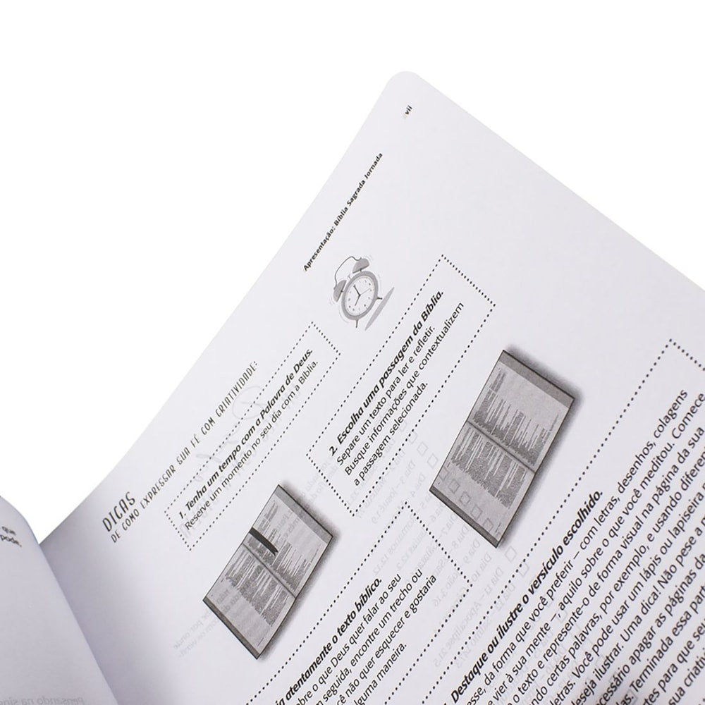Na Bíblia Sagrada Jornada, há muitos espaços para que você escreva, anote, desenhe, cole, pinte e personalize sua Bíblia. Ao ler a Palavra de Deus, o leitor poderá interagir, registrando o que pensa ou sente, anotando explicações ou pregações, fazendo ilustrações, sublinhando ou destacando o que mais chamou a atenção no texto sagrado. Esta Bíblia é ideal para tudo isso e muito mais.
