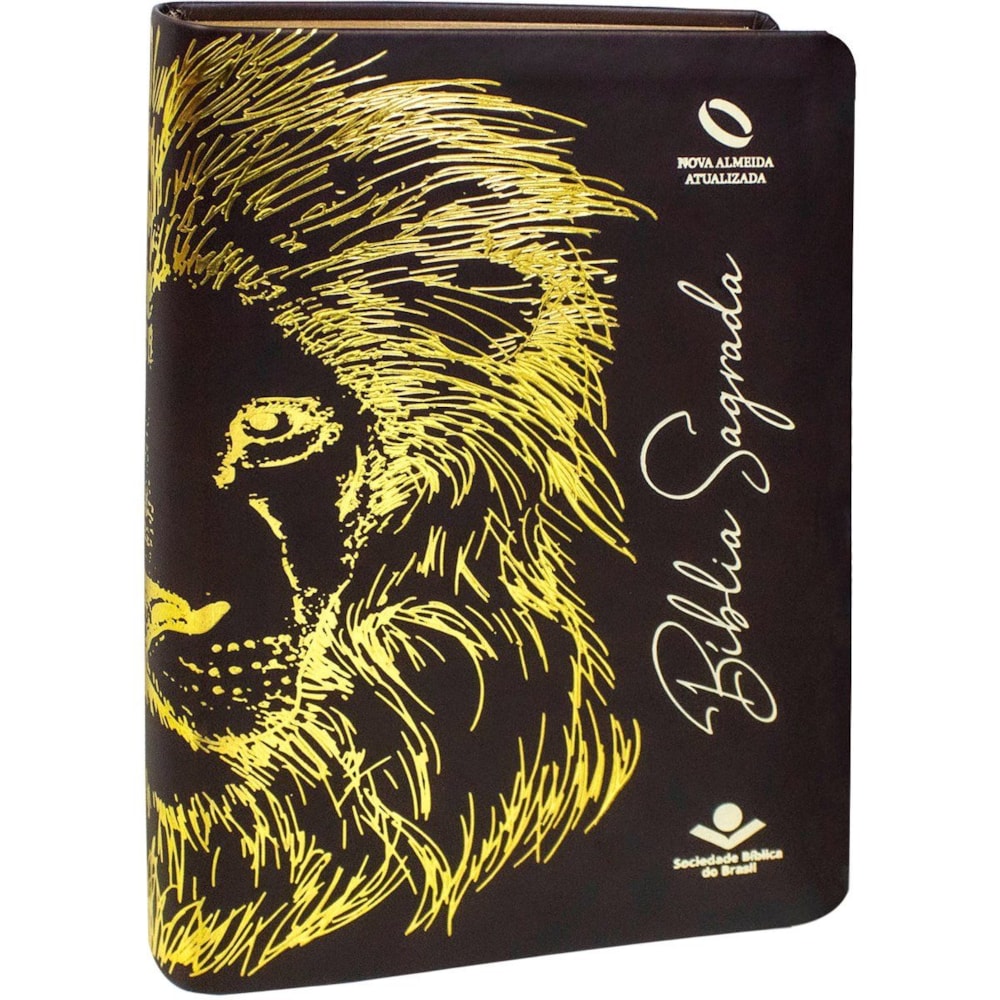 Bíblia Sagrada Leão Dourado | NAA | Letra Grande | Capa Marrom Luxo