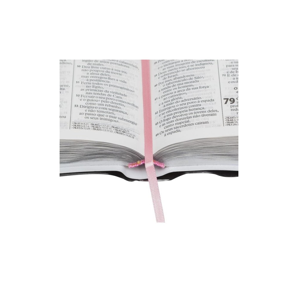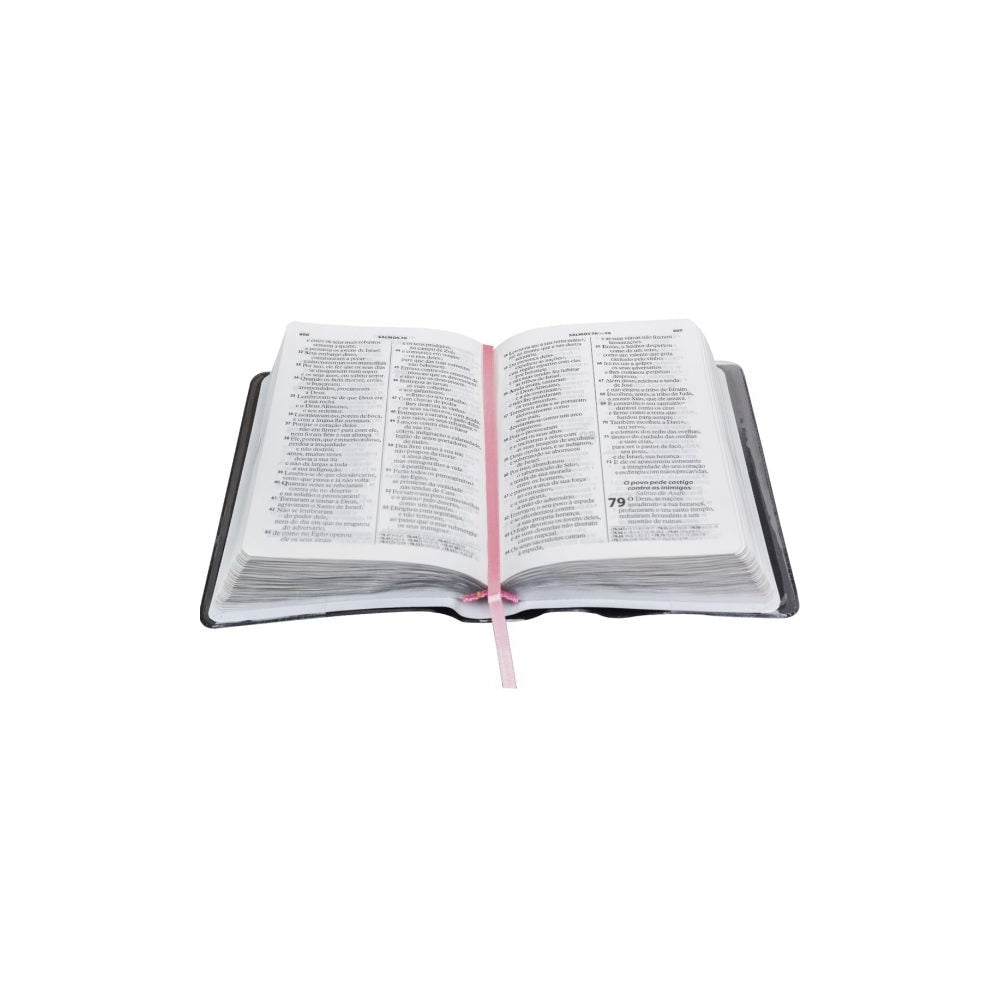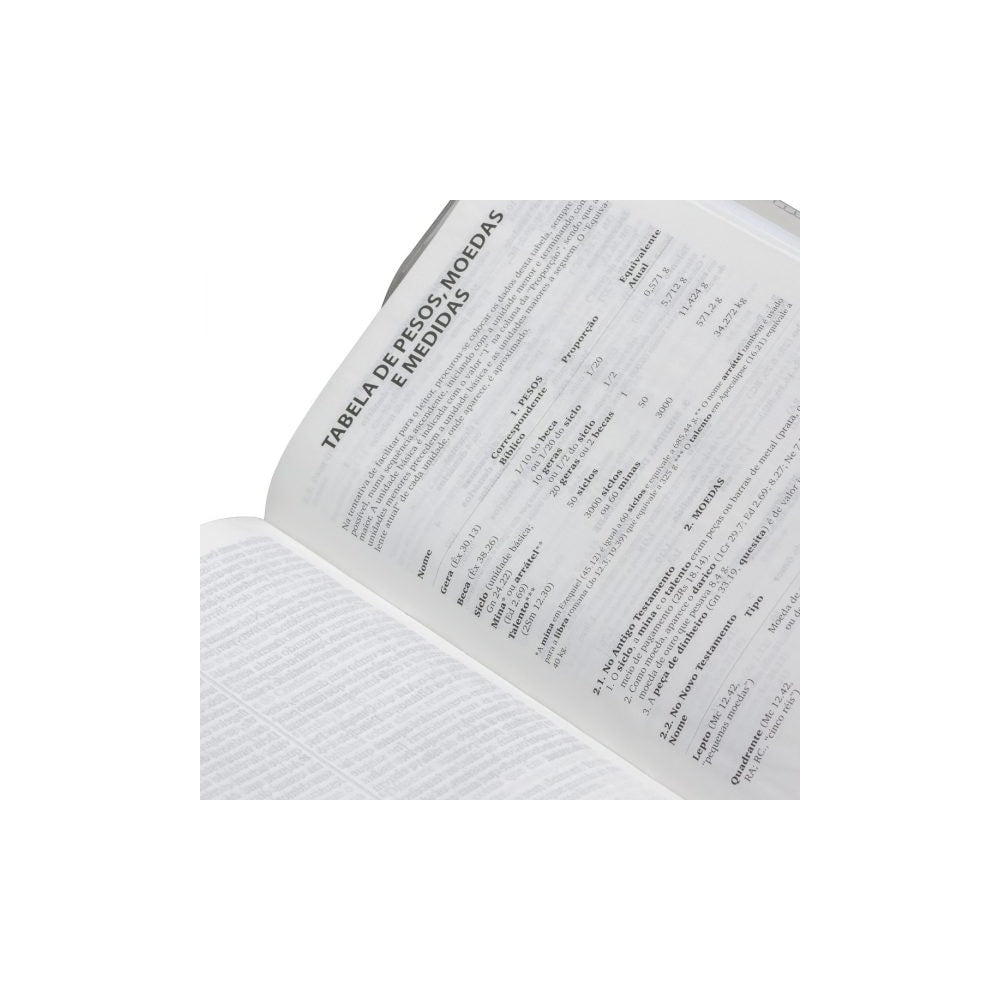 Esta edição da Bíblia Sagrada tem formato compacto e letra grande com a capa luxo acabada em couro bonded. É ideal para quem busca conforto na leitura da Palavra de Deus e, em simultâneo, praticidade no uso e transporte diários. Disponível em diversas opções de capa, com ou sem índice.