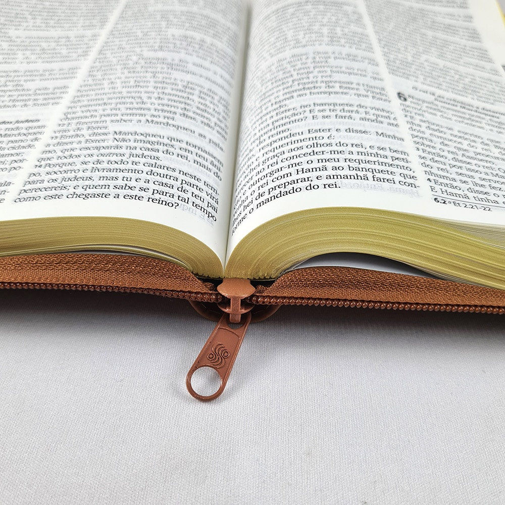 Bíblia Sagrada | Letra Grande | ARC | Capa Luxo Cruz Caramelo c/ Ziper
