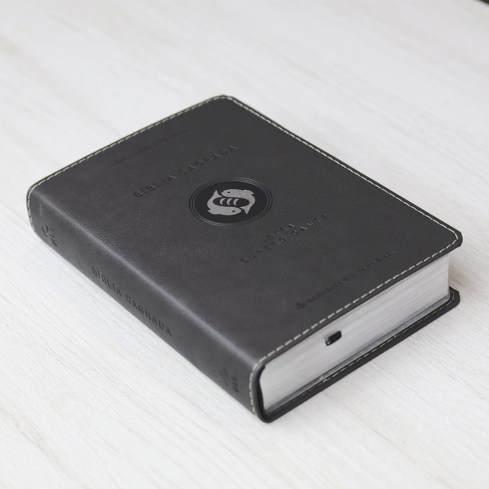 Bíblia Sagrada | Letra Supergigante | NAA | Capa Luxo Cinza Peixe