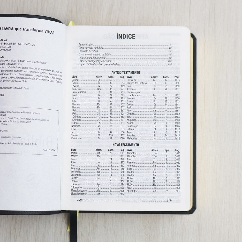 A tradução utilizada é a Nova Almeida Atualizada (NAA), lançada em 2017 pela SBB após uma revisão cuidadosa da tradicional Almeida Revista e Atualizada.