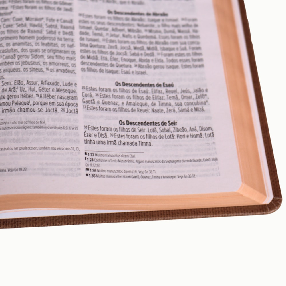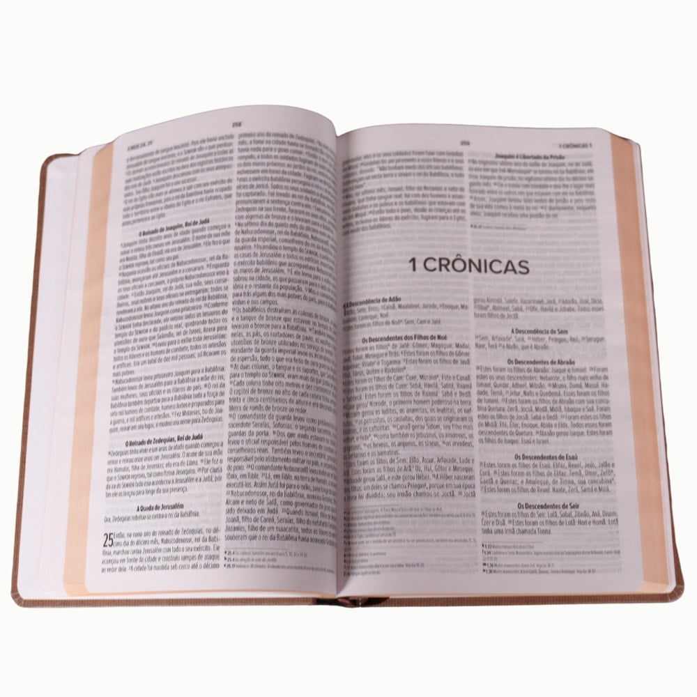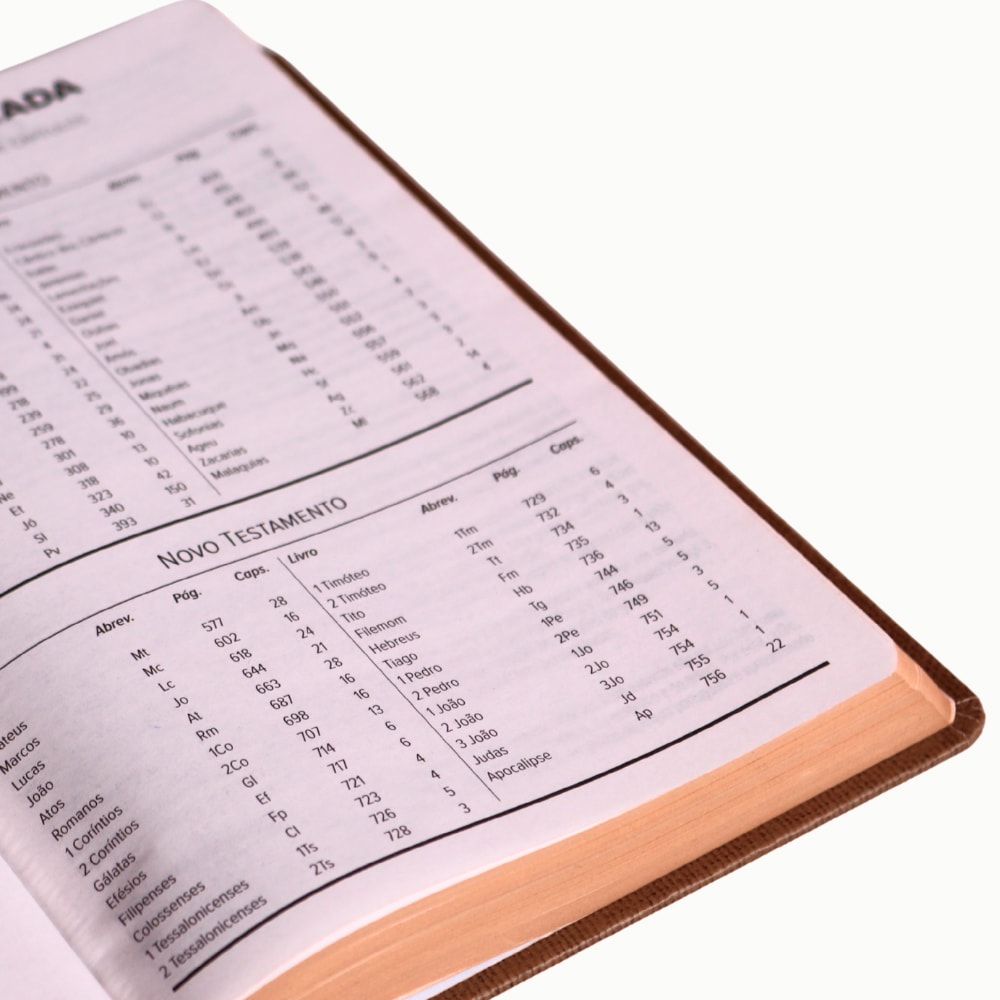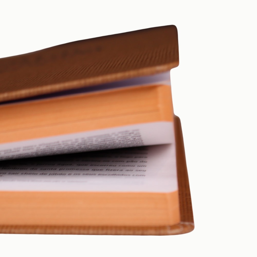 Esta edição em capa dura foi desenvolvida para durabilidade e uso frequente, e inclui recursos funcionais como bordas arredondadas, fita marcadora de páginas em cetim e miolo colorido, com destaque em vermelho para as palavras de Jesus, permitindo uma identificação rápida e uma leitura mais organizada.