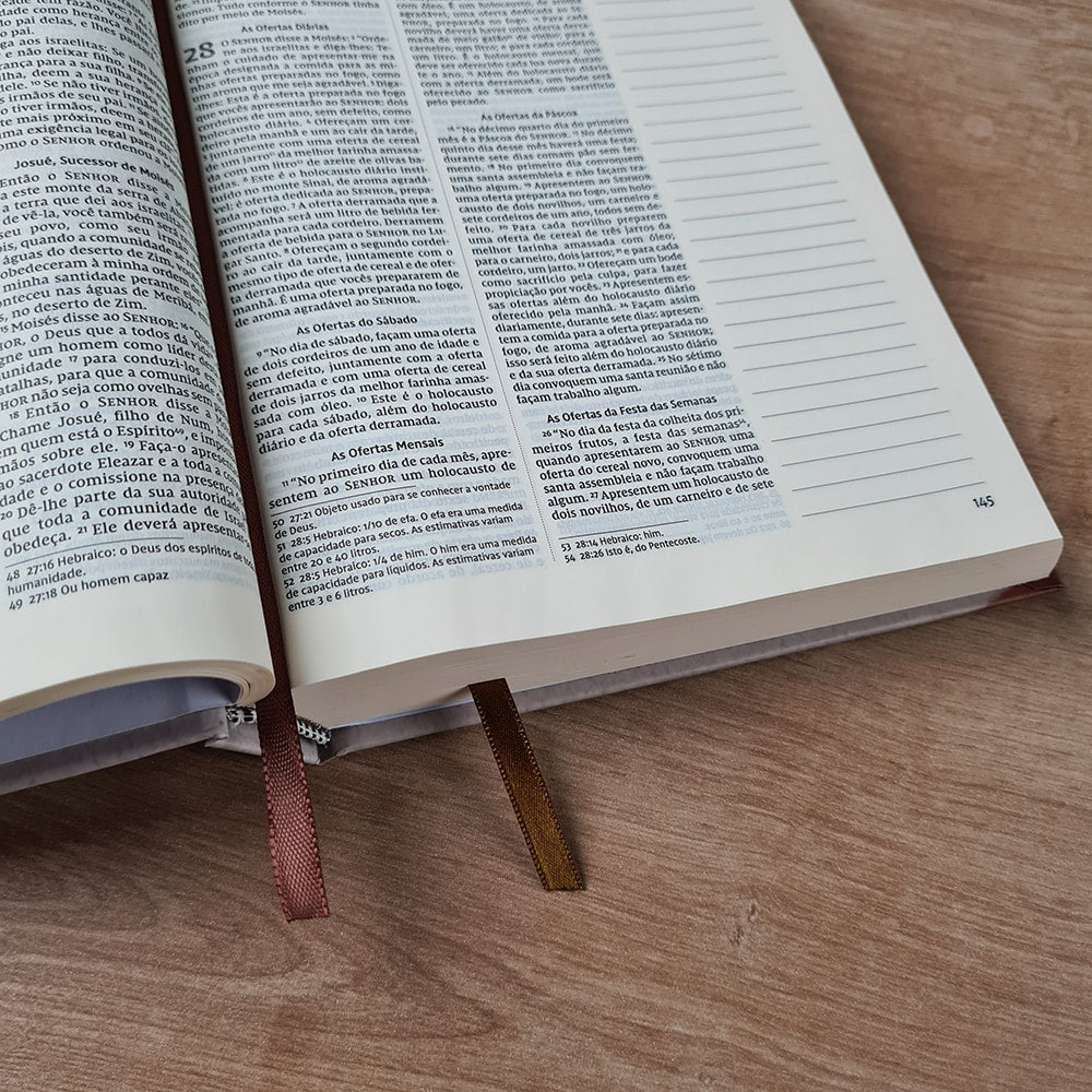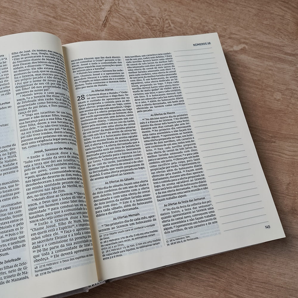 Pensada para você que gosta de registrar comentários e anotações que enriqueçam a compreensão do texto bíblico, Sua Bíblia foi elaborada para incluir anotações sem prejudicar a leitura das Escrituras. Com papel diferenciado que dá mais destaque às suas anotações e mais visibilidade ao texto, graças a uma fonte especial.
