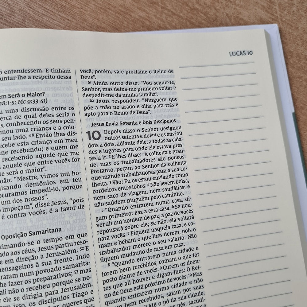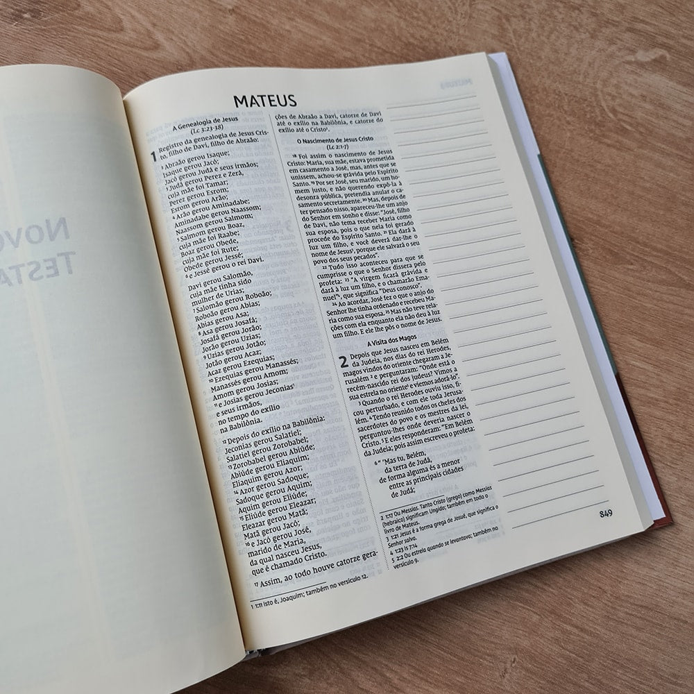 Quantas vezes estamos na igreja e ouvimos algo tão tocante que queremos registrar, mas não podemos porque não temos onde anotar? Você até gostaria de escrever na própria Bíblia, para que aquela informação complementasse seus estudos bíblicos, mas ela não tem espaço. Esta Bíblia chegou para resolver esse problema.