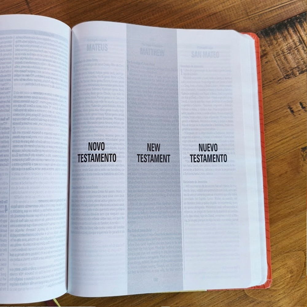 Bíblia Sagrada | NAA | Trilíngue | Português | Inglês | Espanhol | Semiflexível
