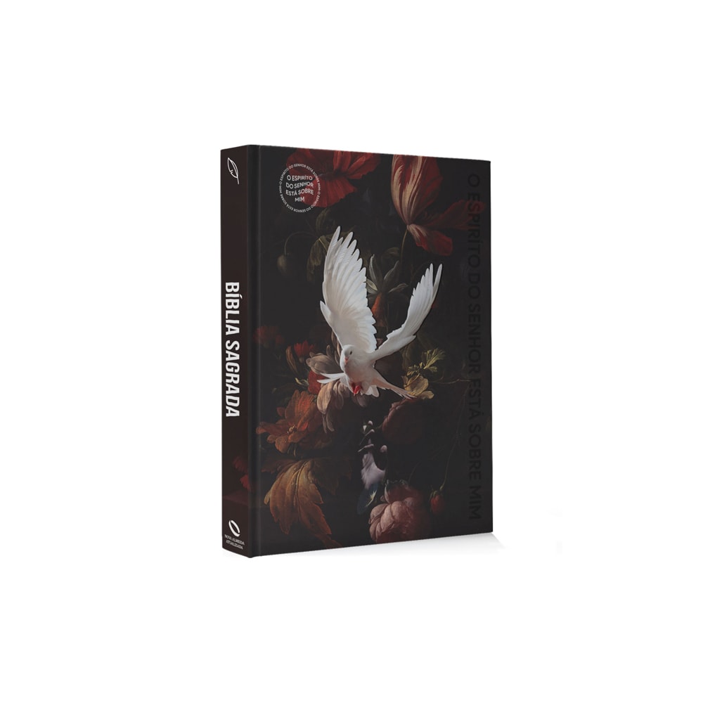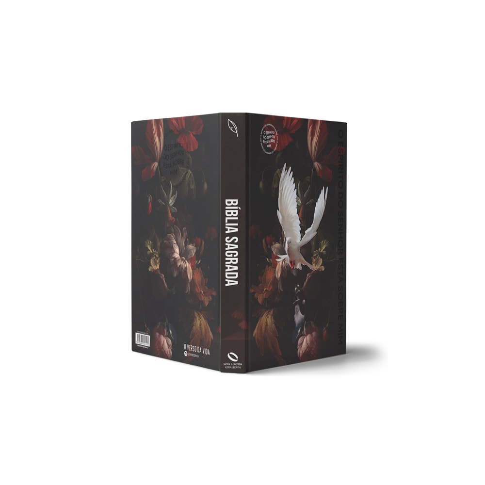 Bíblia Sagrada com capa dura desenvolvida pela editora O Verso da Vida traz uma capa O Espírito Santo está sobre mim. O modelo traz com sigo o texto NAA (Nova Almeida Atualizada), com letra no tamanho normal.