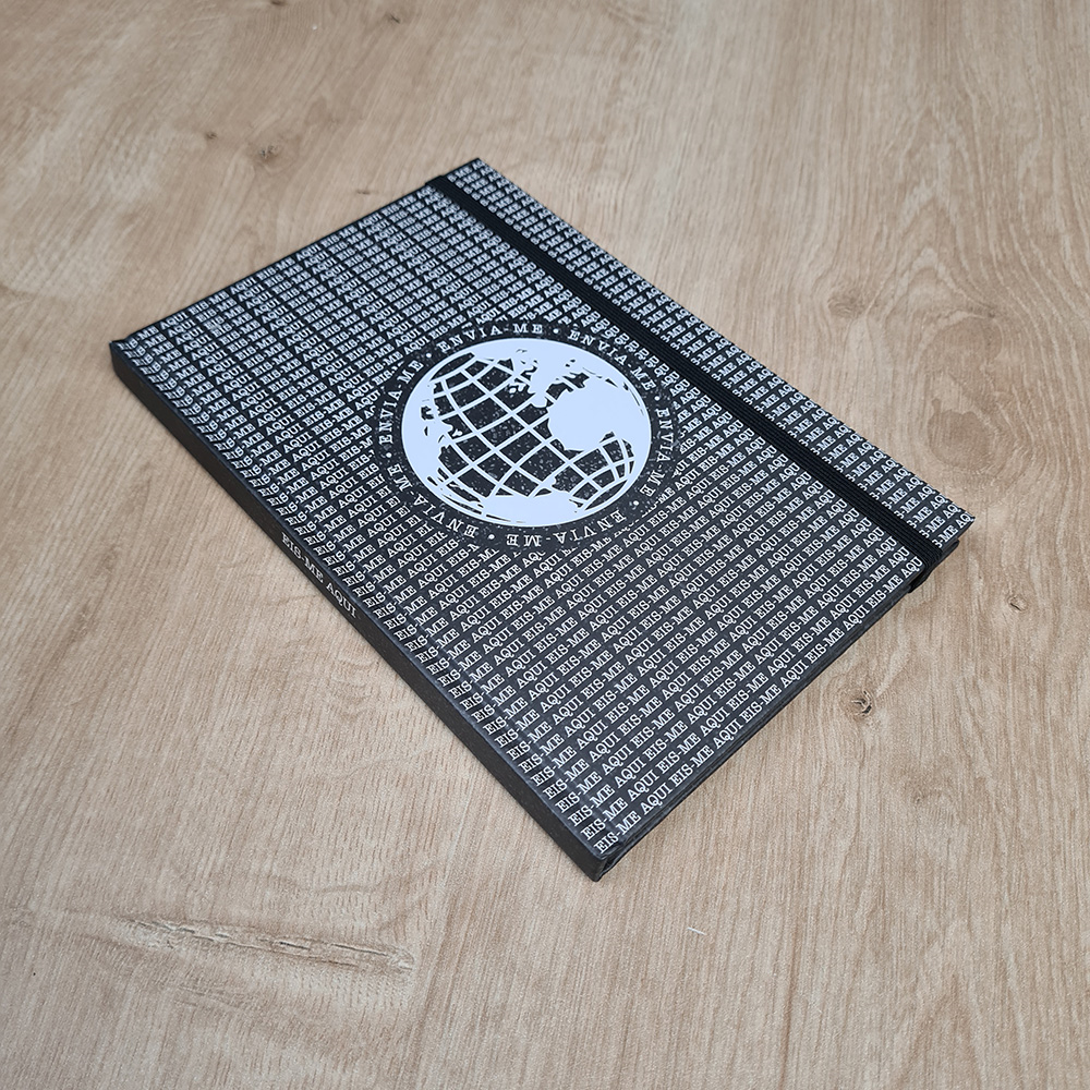 Moleskine capa dura com cantos arredondados e elástico lateral. "Envia-me".| Título: | Moleskine folha 80 gramas, sem impressão |