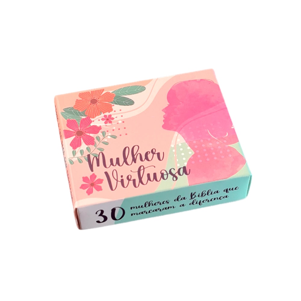 A "Caixinha de Mensagens Diárias | Mulher Virtuosa Roxa" é um presente encantador que traz à vida 30 inspirações de mulheres da Bíblia que marcaram a história.