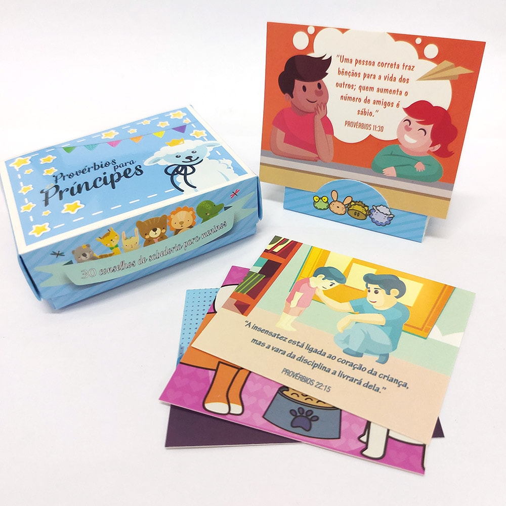 Caixinha com 30 Conselhos de sabedoria para meninos, proporcionando um momento com Deus a cada dia.