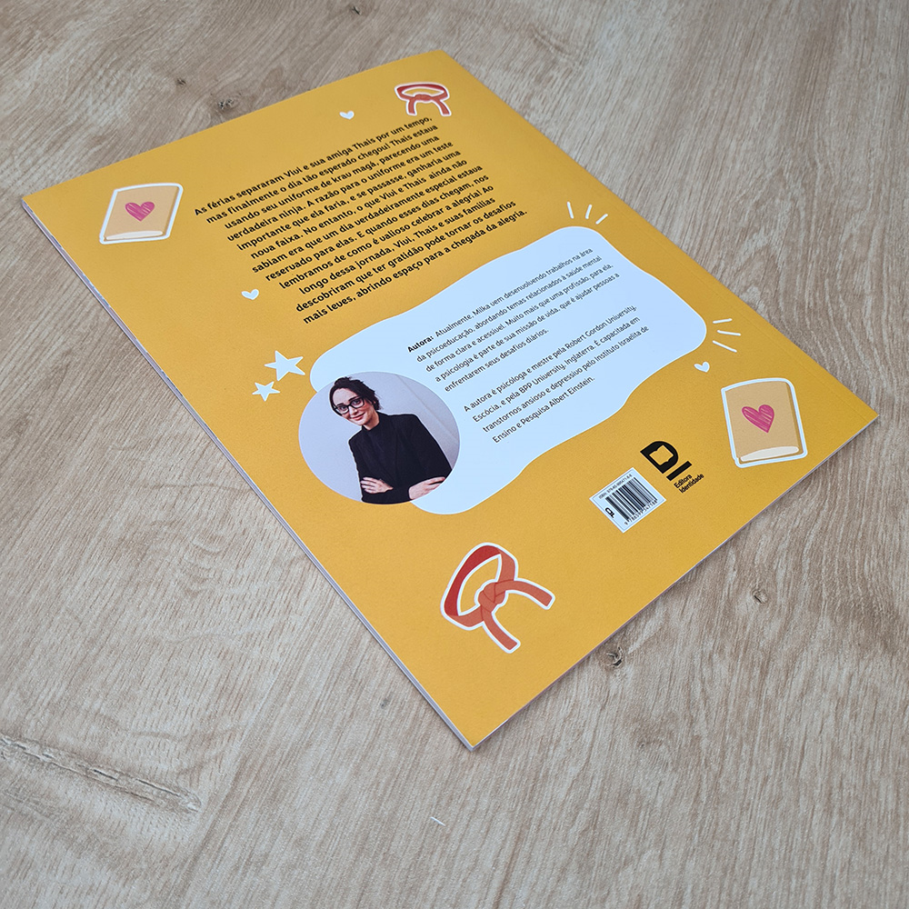 As férias separaram Vivi e sua amiga Thaís por um tempo, mas finalmente o dia tão esperado chegou! Thais estava usando seu uniforme de krav magá, parecendo uma verdadeira ninja. A razão para o uniforme era um teste importante que ela faria, e se passasse, ganharia uma nova faixa. No entanto, o que Vivi e Thaís ainda não sabiam era que um dia verdadeiramente especial estava reservado para elas. E quando esses dias chegam, nos lembramos de como é valioso celebrar a alegria! Ao longo dessa jornada, Vivi, Thaís e suas famílias descobriram que ter gratidão pode tornar os desafios mais leves, abrindo espaço para a chegada da alegria. Esse livro faz parte da COLEÇÃO EMOÇÕES, da autora Milka Lins. A autora é psicóloga e mestre pela Robert Gordon University Escócia, e pela BPP University, Inglaterra; é capacitada em transtornos ansioso e depressivo pelo Instituto Israelita de Ensino e Pesquisa Albert Einstein; já vem desenvolvendo trabalhos na área de psicoeducação, abordando temas relacionados à saúde mental de forma clara e acessível. Muito mais que uma profissão, para ela, a psicologia é parte de sua missão de vida, que é ajudar pessoas a enfrentarem seus desafios diários.