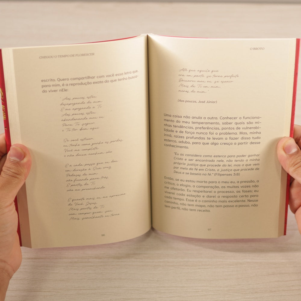 A estação está mudando. Ao observar as flores, somos levados a refletir sobre o tempo e suas transformações. O próprio Deus utilizou as flores em Sua Palavra para nos transmitir lições valiosas. Da semente ao florescimento, nosso Abba nos convida a trilhar uma jornada desafiadora, mas repleta de recompensas. Viver cada etapa desse crescimento é o que nos molda para sermos quem Ele nos criou para ser. É exatamente sobre isso que falaremos ao longo deste livro.