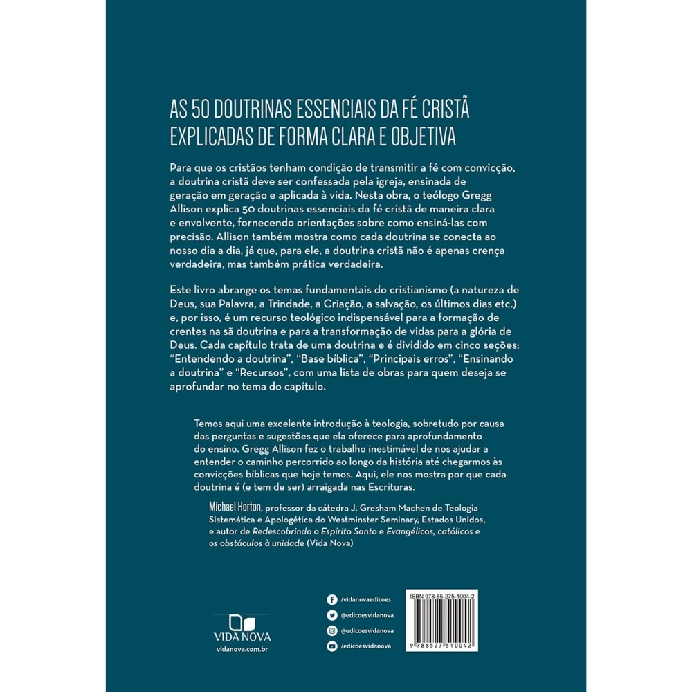 Para que os cristãos tenham condição de transmitir a fé com convicção, a doutrina cristã deve ser confessada pela igreja, ensinada de geração em geração e aplicada à vida. Nesta obra, o teólogo Gregg Allison explica 50 doutrinas essenciais da fé cristã de maneira clara e envolvente, fornecendo orientações sobre como ensiná-las com precisão. Allison também mostra como cada doutrina se conecta ao nosso dia a dia, já que, para ele, a doutrina cristã não é apenas crença verdadeira, mas também prática verdadeira.