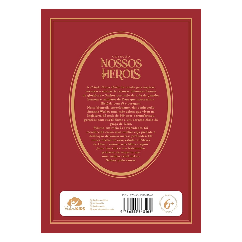 Nesta biografia emocionante, os jovens leitores conhecerão a história de Susanna Wesley, uma mãe zelosa que viveu na Inglaterra há mais de 300 anos e transformou gerações com uma fé inabalável e um coração cheio da graça divina.