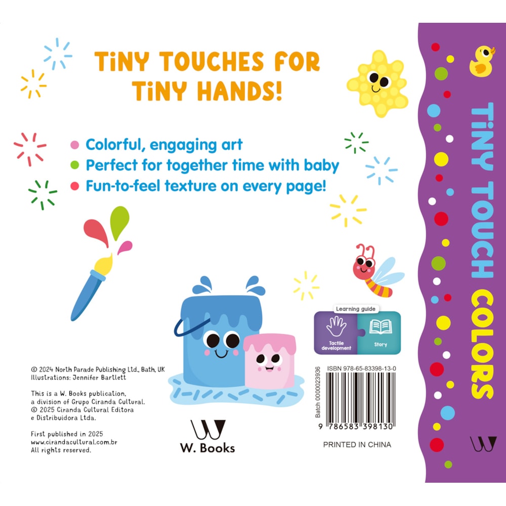 Tiny touches for tiny hands! Colorful, engaging art. Perfect for together time with baby. Fun-to-feel texture on every page!