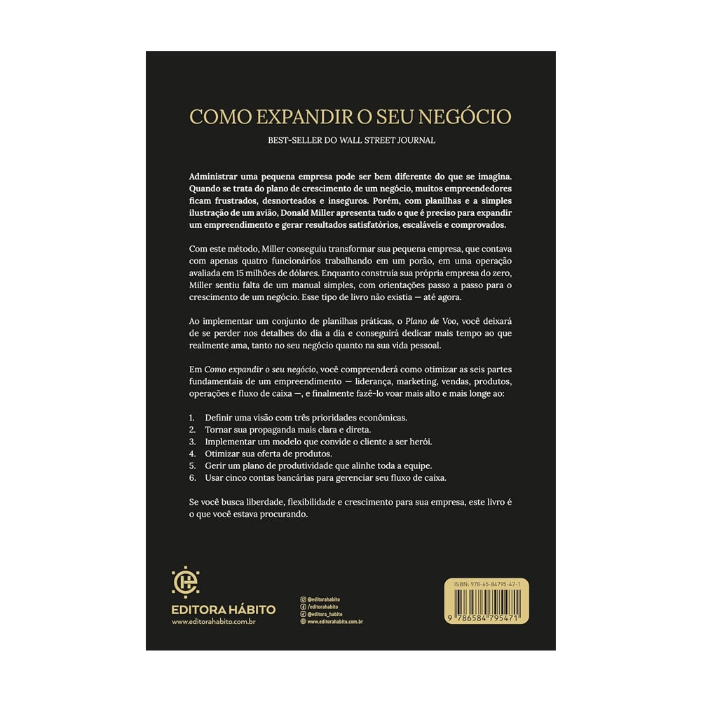 Administrar uma pequena empresa pode ser bem diferente do que se imagina. Quando se trata do plano de crescimento de um negócio, muitos empreendedores ficam frustrados, desnorteados e inseguros. Porém, com planilhas e a simples ilustração de um avião, Donald Miller apresenta tudo o que é preciso para expandir um empreendimento e gerar resultados satisfatórios, escaláveis e comprovados.