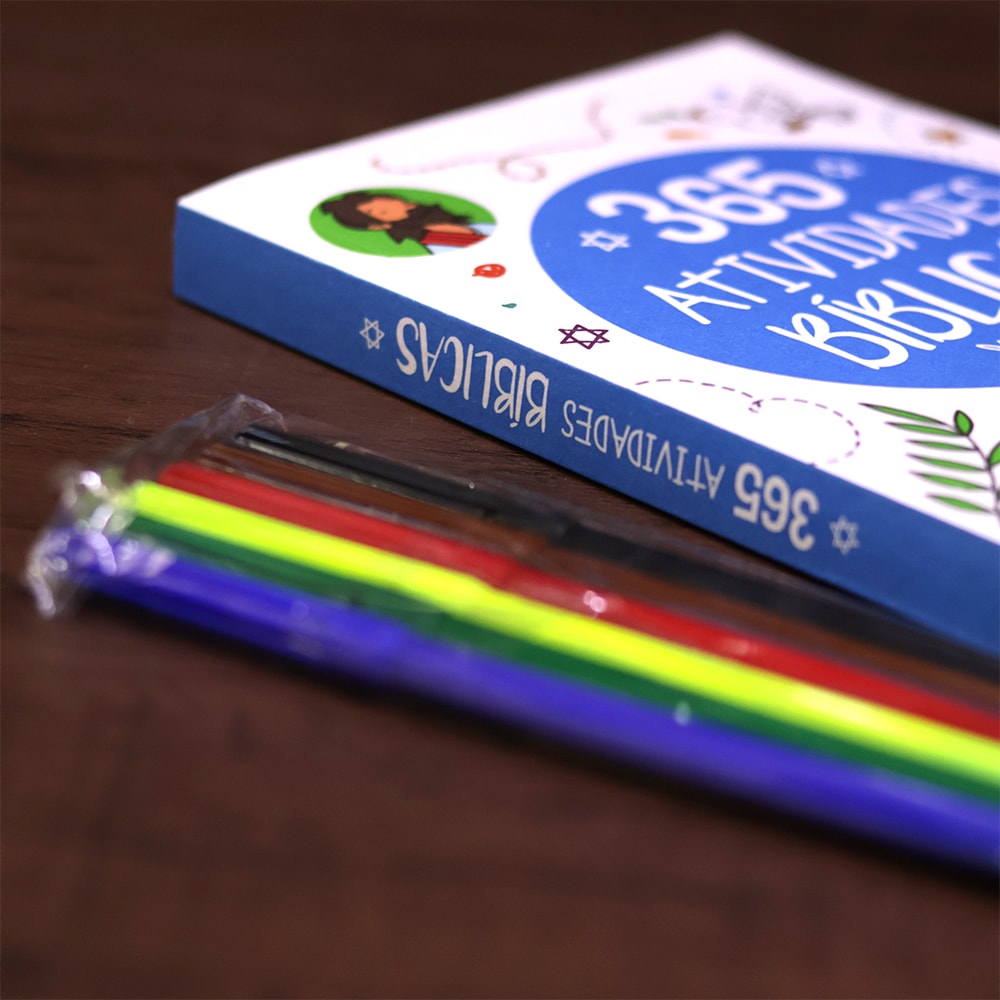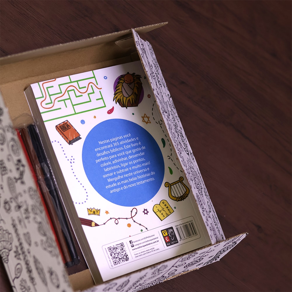 Conjunto 365 Atividades Bíblicas | Caixa Customizável | Com Canetinha Hidrográfica | 3 Anos