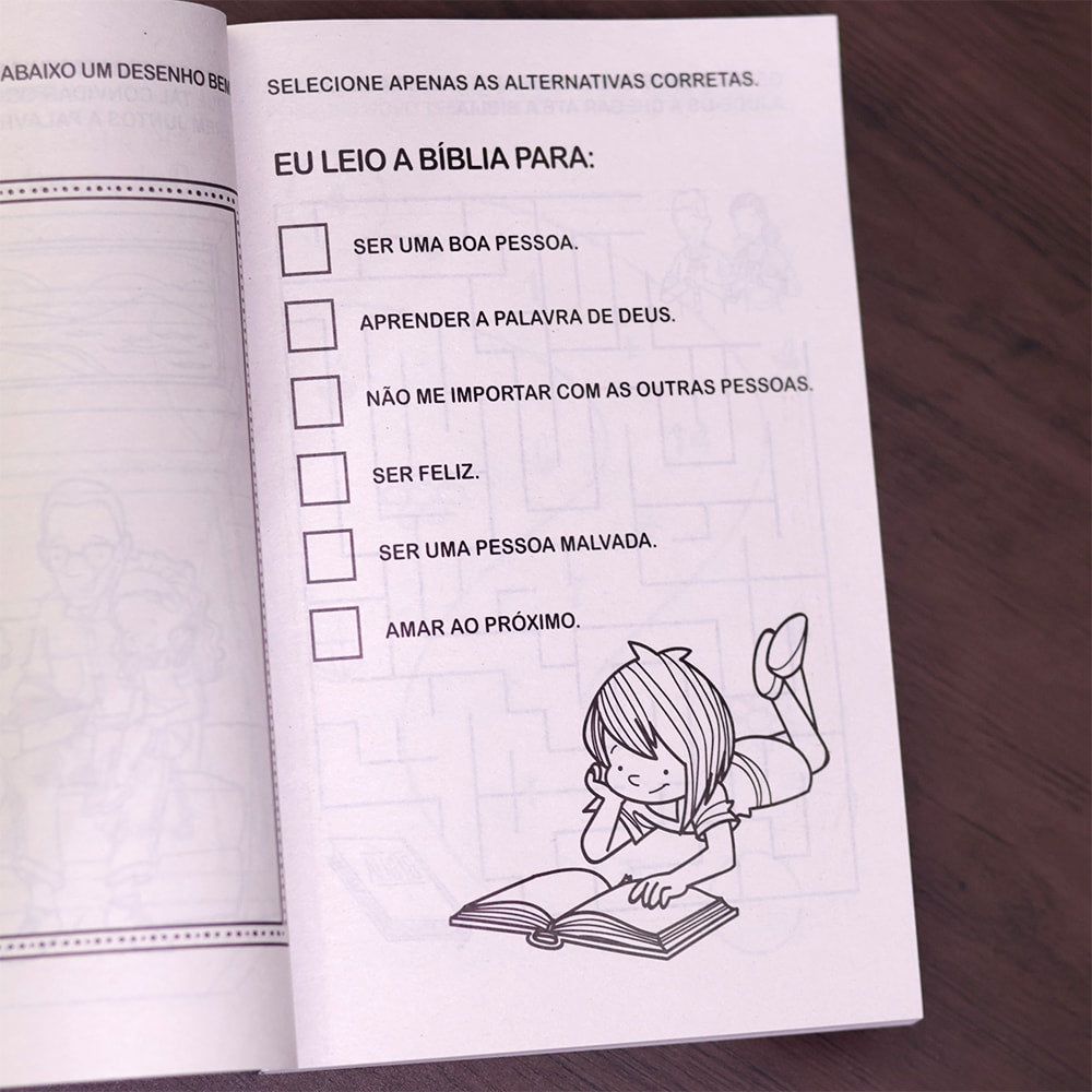 Este livro é perfeito para você que gosta de colorir, adivinhar, desvendar labirintos, ligar os pontos, somar e subtrair e muito mais! Mergulhe neste universo e estude as mais belas histórias do antigo e do novo testamento.