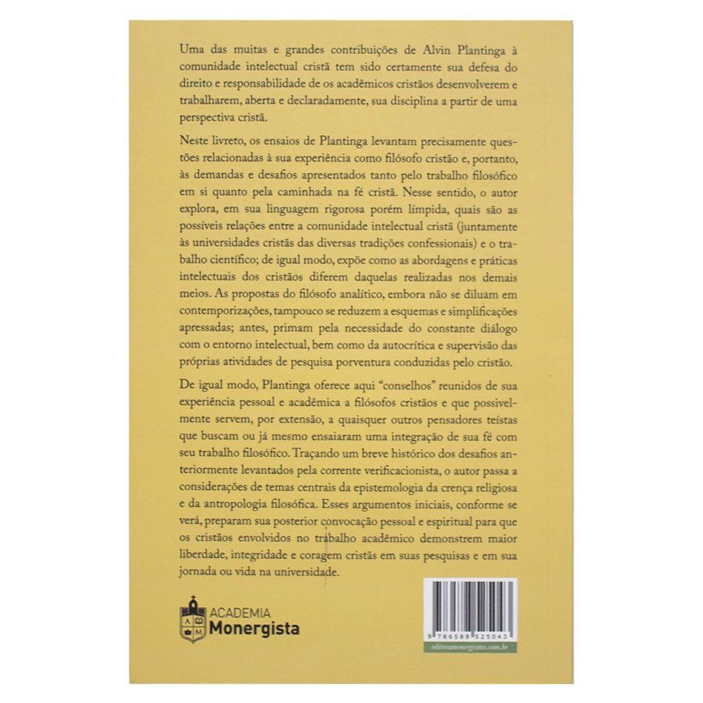 Uma das muitas e grandes contribuições de Alvin Plantinga à comunidade intelectual cristã tem sido certamente sua defesa do direito e responsabilidade de os acadêmicos cristãos desenvolverem e trabalharem, aberta e declaradamente, sua disciplina a partir de uma perspectiva cristã. Neste livreto, os ensaios de Plantinga levantam precisamente questões relacionadas à sua experiência como filósofo cristão e, portanto, às demandas e desafios apresentados tanto pelo trabalho filosófico em si quanto pela caminhada na fé cristã. Nesse sentido, o autor explora, em sua linguagem rigorosa porém límpida, quais são as possíveis relações entre a comunidade intelectual cristã (juntamente às universidades cristãs das diversas tradições confessionais) e o trabalho científico; de igual modo, expõe como as abordagens e práticas intelectuais dos cristãos diferem daquelas realizadas nos demais meios. As propostas do filósofo analítico, embora não se diluam em contemporizações, tampouco se reduzem a esquemas e simplificações apressadas; antes, primam pela necessidade do constante diálogo com o entorno intelectual, bem como da autocrítica e supervisão das próprias atividades de pesquisa porventura conduzidas pelo cristão. De igual modo, Plantinga oferece aqui "conselhos" reunidos de sua experiência pessoal e acadêmica a filósofos cristãos e que possivelmente servem, por extensão, a quaisquer outros pensadores teístas que buscam ou já mesmo ensaiaram uma integração de sua fé com seu trabalho filosófico. Traçando um breve histórico dos desafios anteriormente levantados pela corrente verificacionista, o autor passa a considerações de temas centrais da epistemologia da crença religiosa e da antropologia filosófica. Esses argumentos iniciais, conforme se verá, preparam sua posterior convocação pessoal e espiritual para que os cristãos envolvidos no trabalho acadêmico demonstrem maior liberdade, integridade e coragem cristãs em suas pesquisas e em sua jornada ou vida na universidade.