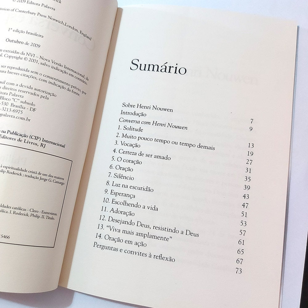 "Como você irá identificar, a direção da conversa deste livro enfatiza a verdade de que o silêncio e a solitude são percursores do serviço. Este é um tempo profundo de desafio e um convite a cada um de nós que sentimos em nossos corações a abertura para um caminho contemplativo e a revigorarão da fé, da esperança e do amor. É uma alegria convidar-lhe para compartilhar dessa conversa entre Henri e eu. Que você possa ser profundamente abençoado escutando e lendo, assim como em todos os aspectos da sua própria jornada com Deus."