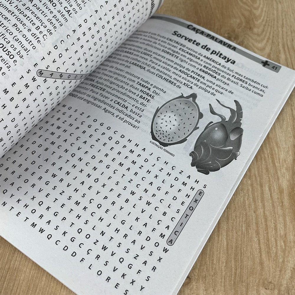 Muitas horas de diversão inteligente, num livro de 144 páginas de Caça-palavras.
