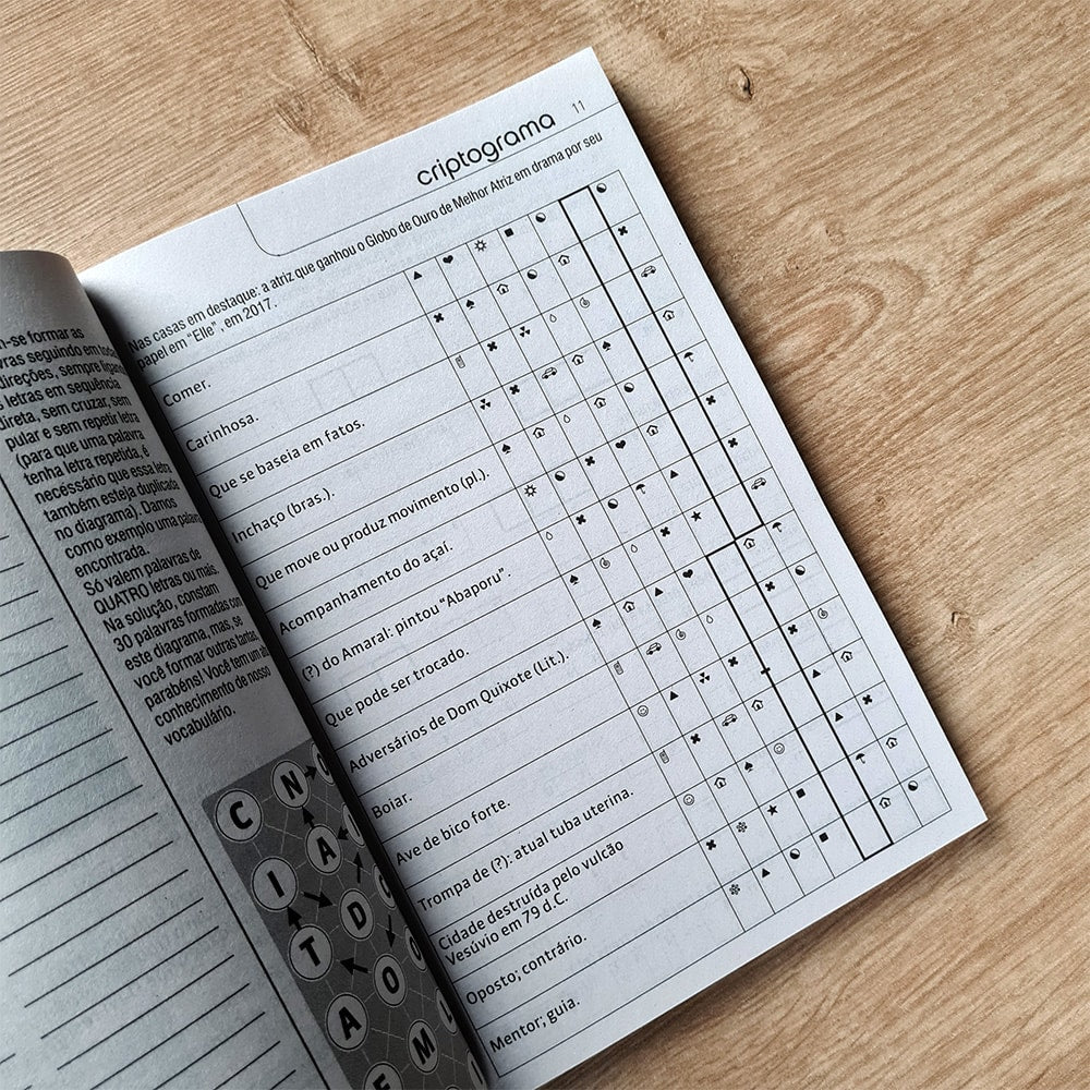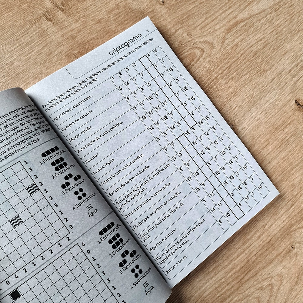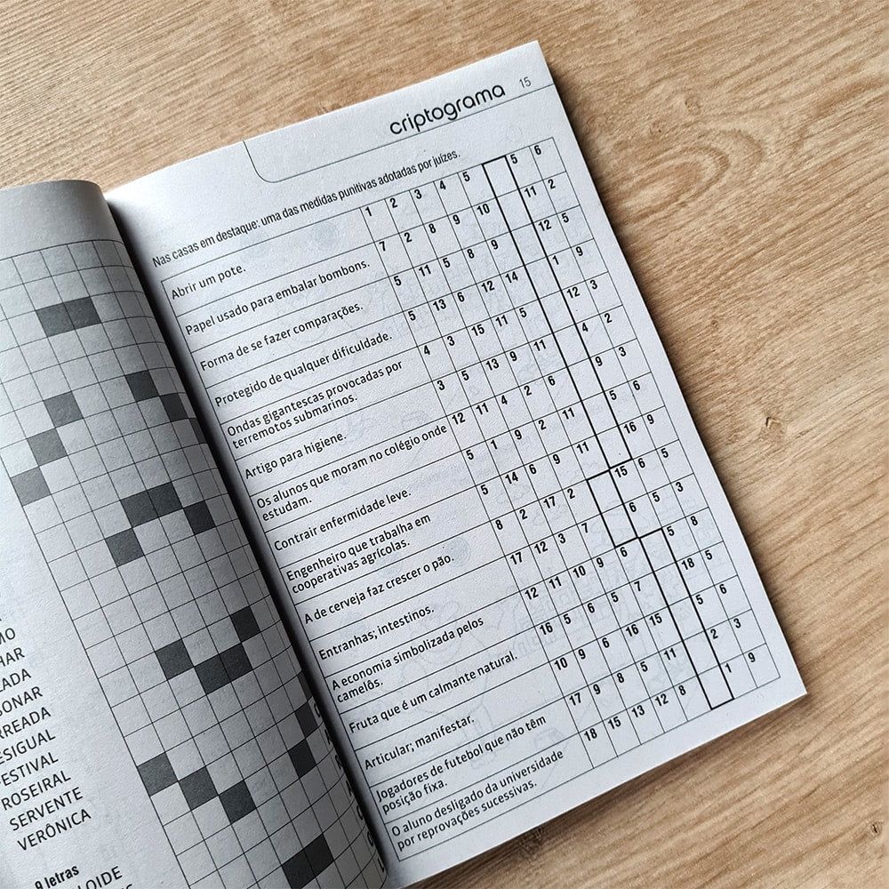 Muitas horas de diversão cheia de desafios em 144 páginas de Criptogramas e outros passatempos.