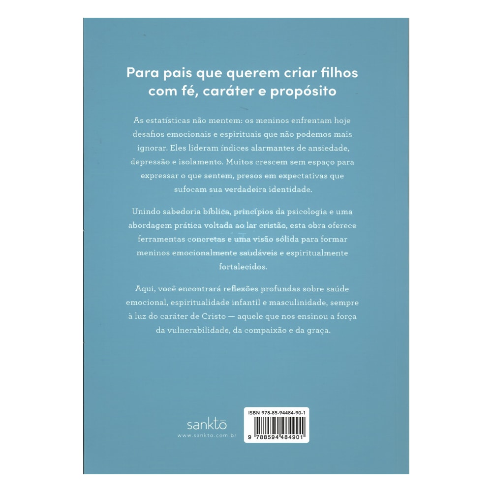 Unindo sabedoria bíblica, princípios da psicologia e uma abordagem prática voltada ao lar cristão, a obra oferece ferramentas concretas e uma visão sólida para formar meninos emocionalmente saudáveis e espiritualmente fortalecidos.
