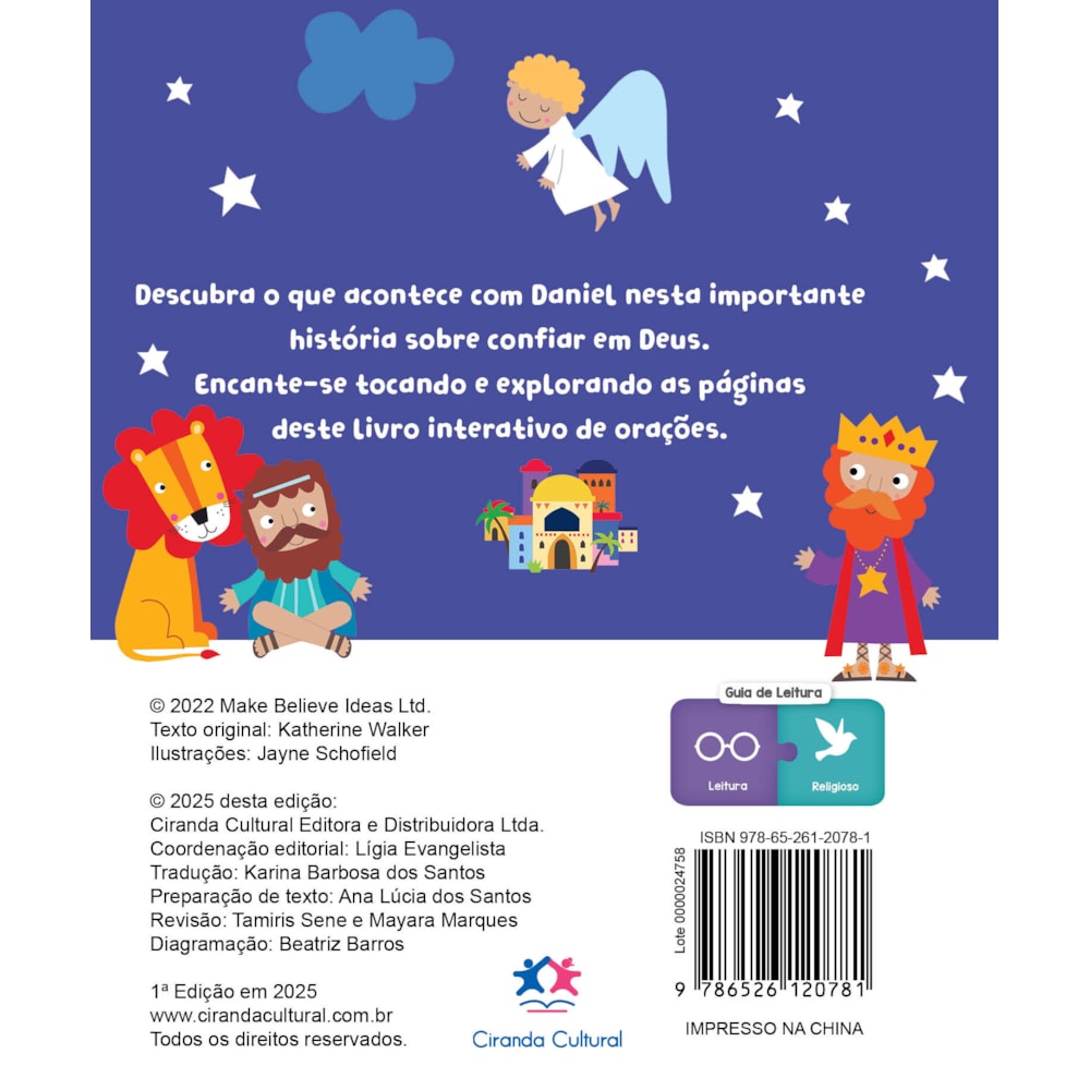 Descubra o que acontece com Daniel nesta importante história sobre confiar em Deus. Este livro interativo tem uma oração para compartilhar e toques divertidos para explorar. Ah... e ainda seu pequeno pode levar para onde quiser, pois possui uma alça como uma maleta ou seja são histórias bíblicas com alça!