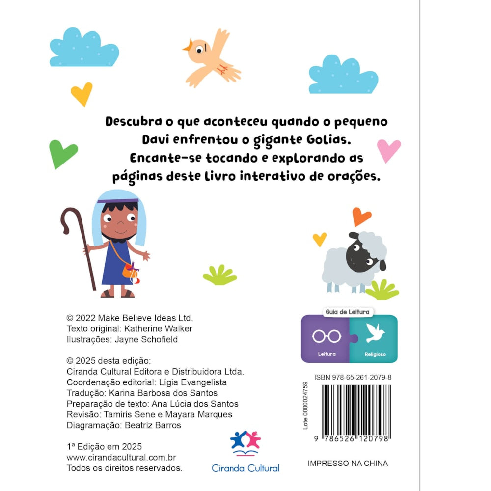 Descubra o que acontece quando Davi luta contra o grande gigante Golias! Este livro interativo tem uma oração para compartilhar e toques divertidos para explorar. Ah... e ainda seu pequeno pode levar para onde quiser, pois possui uma alça como uma maleta ou seja são histórias bíblicas com alça!