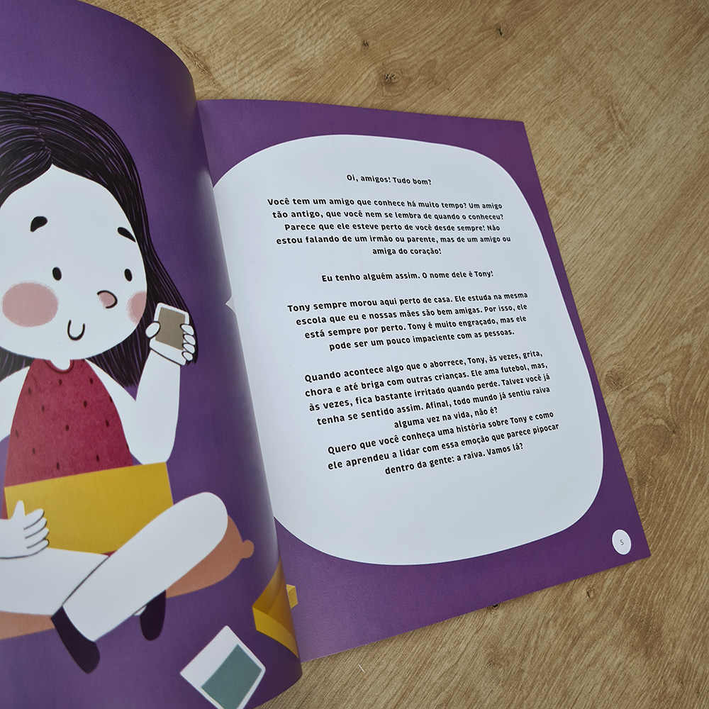 Alguma vez você já se sentiu tão bravo que parecia que ia explodir? O Tony adora brincar e jogar futebol, mas quando algo o deixa chateado, ele fica tão irritado que fica vermelho como um tomate! O problema é que se a gente não souber controlar a raiva, podemos acabar machucando a nós mesmos e aos outros. Um dia, o Tony, a Vivi e os amigos deles aprenderam uma lição valiosa enquanto brincavam de queimado na rua. Lembre-se de que é normal sentir raiva de vez em quando, mas cada pessoa pode descobrir diferentes maneiras de controlá-la e vencer essa poderosa emoção! Esse livro faz parte da COLEÇÃO EMOÇÕES, da autora Milka Lins. A autora é psicóloga e mestre pela Robert Gordon University Escócia, e pela BPP University, Inglaterra; é capacitada em transtornos ansioso e depressivo pelo Instituto Israelita de Ensino e Pesquisa Albert Einstein; já vem desenvolvendo trabalhos na área de psicoeducação, abordando temas relacionados à saúde mental de forma clara e acessível. Muito mais que umaprofissão, para ela, a psicologia é parte de sua missão de vida, que é ajudar pessoas a enfrentarem seus desafios diários.