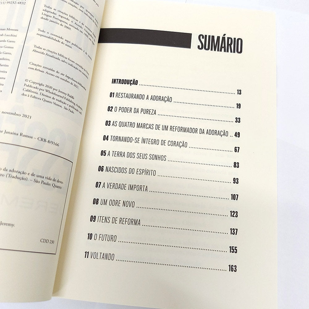 Por mais que o som da música cristã moderna tenha aumentado estrondosamente, as batidas do coração da verdadeira adoração esmoreceram. Este é um chamado para todos cujo interior queima por vê-la revigorada e arde com o fogo da reforma. Estas páginas do livro visam impactar aqueles que anseiam por ver a pureza da adoração ser restaurada, e a casa de oração do Senhor voltar a refletir a plenitude de Sua glória e as maravilhas de Seu coração.