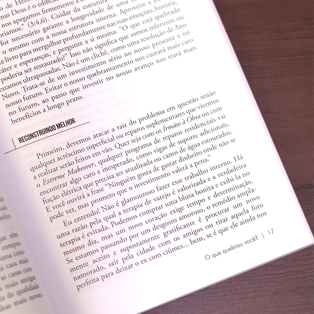 Os términos geralmente são associados a sorvete de chocolate, reprises de comédias românticas e episódios de choro intenso. Mas aqui não! Este é um convite à libertação, uma oportunidade de se libertar do que você foi e descobrir quem você realmente é. Muitas vezes, nossos erros e arrependimentos passados nos impedem de alcançar o lugar onde somos chamadas a estar. Como se curar e seguir em frente? Para encontrar sua reviravolta, você deve deixar para trás aquilo que a fez sofrer. Deixe o menos para ter mais. Silencie as mentiras da vergonha. Restaure o seu design original. Com grande compaixão, Christian Bevere mostra como: 1. deixar para trás a sua pedra de tropeço. 2. Ela oferece maneiras práticas de superar o arrependimento, a insegurança e a vergonha, para que você possa desenvolver uma imagem positiva de si mesma e avançar para o futuro com expectativas confiantes.