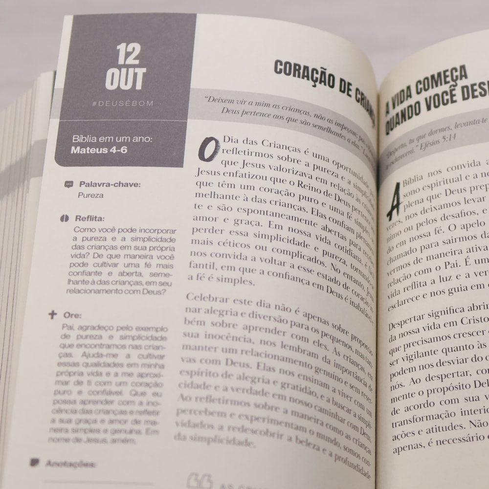 - Plano de leitura bíblica em um ano: Para guiá-lo no estudo contínuo da Palavra.