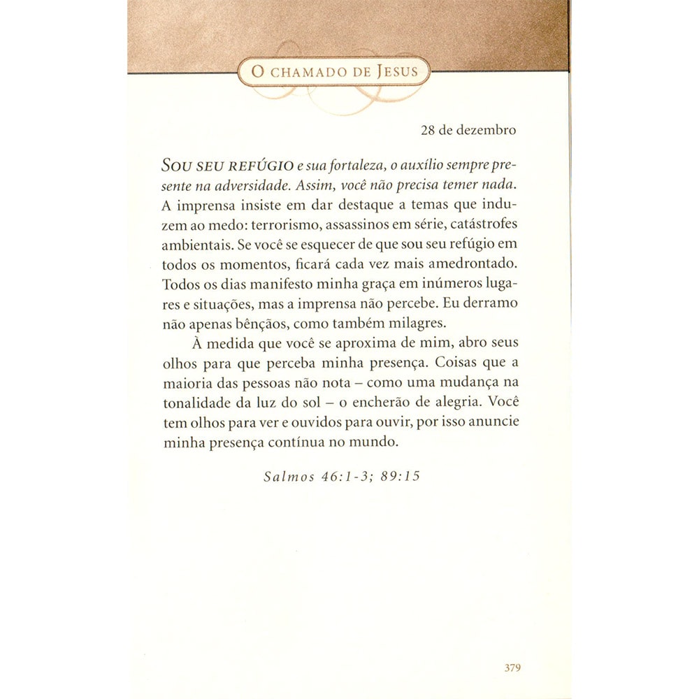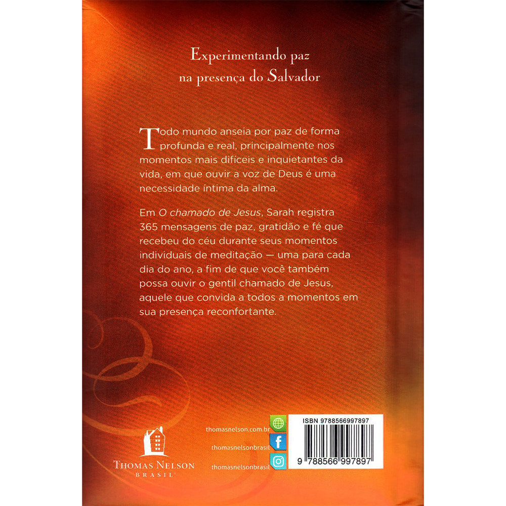 Em O chamado de Jesus, Sarah registra 365 mensagens de paz, gratidão e fé que recebeu do céu durante seus momentos individuais de meditação - uma para cada dia do ano, a fim de que você também possa ouvir o gentil chamado de Jesus, aquele que convida a todos a momentos em sua presença reconfortante.