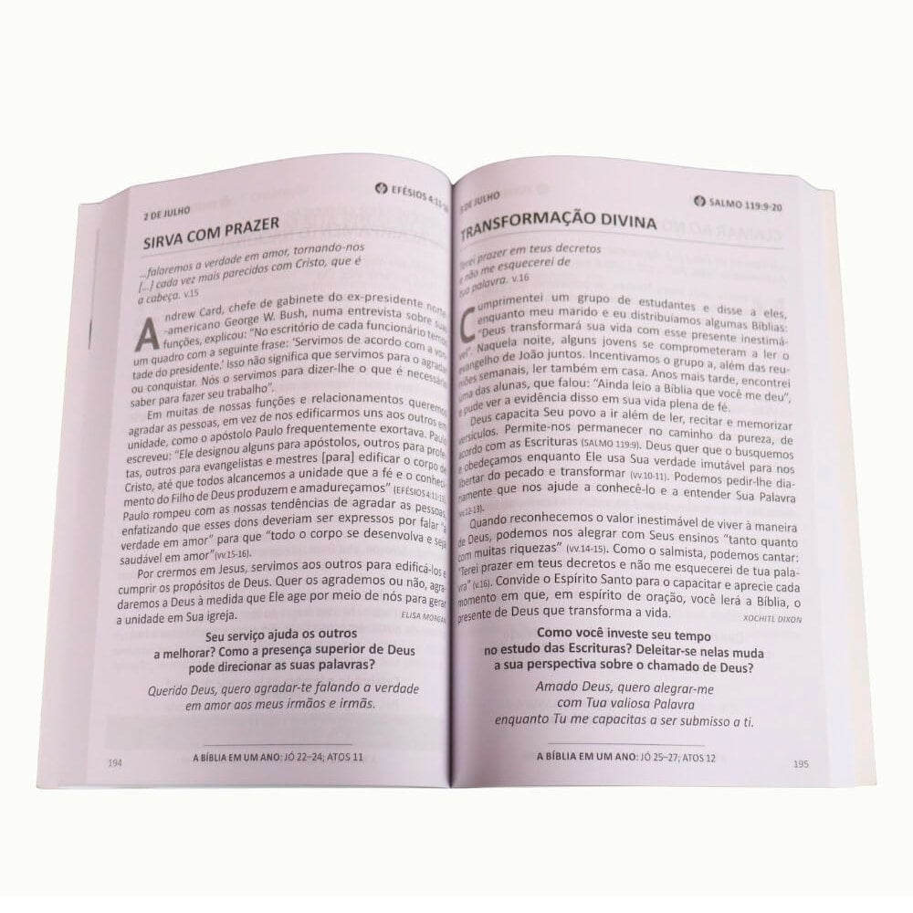 Mais do que um simples devocional, o Pão Diário é um guia prático para quem deseja crescer na fé, confiar plenamente no Senhor e viver os princípios da Palavra de Deus. Cada meditação combina ensino bíblico claro com aplicações para o cotidiano, transformando momentos de leitura em experiências de oração, louvor e aprendizado espiritual.