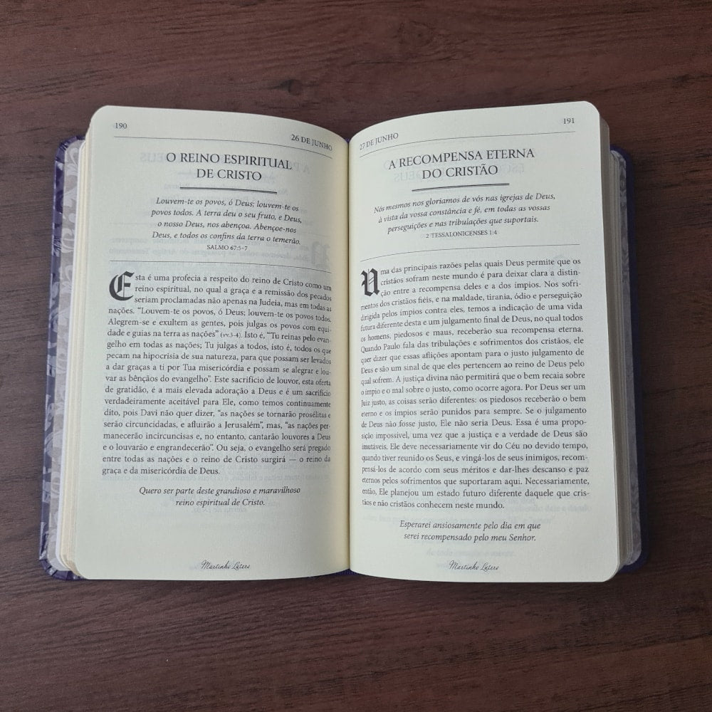 Esta obra apresenta seleções adaptadas dos escritos de Martinho Lutero em um formato devocional diário. Organizada por Marcos Rodrigues Simas e Adriel Moreira Barbosa, a compilação oferece uma reflexão diária extraída das obras originais de Lutero. Com esta adaptação, os leitores podem mergulhar na profundidade espiritual e teológica dos textos de Lutero, de forma acessível e inspiradora.