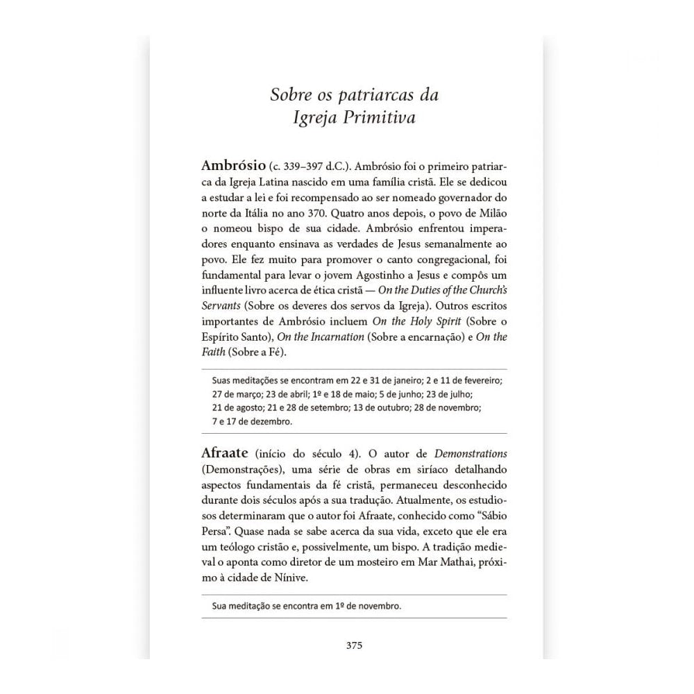 Apresenta seleções dos escritos desses grandes teólogos, tornando-os acessíveis para a meditação diária. Todas as mensagens contêm passagens bíblicas importantes e leituras devocionais extraídas da Coleção Patrística, publicada pela primeira vez em 1885